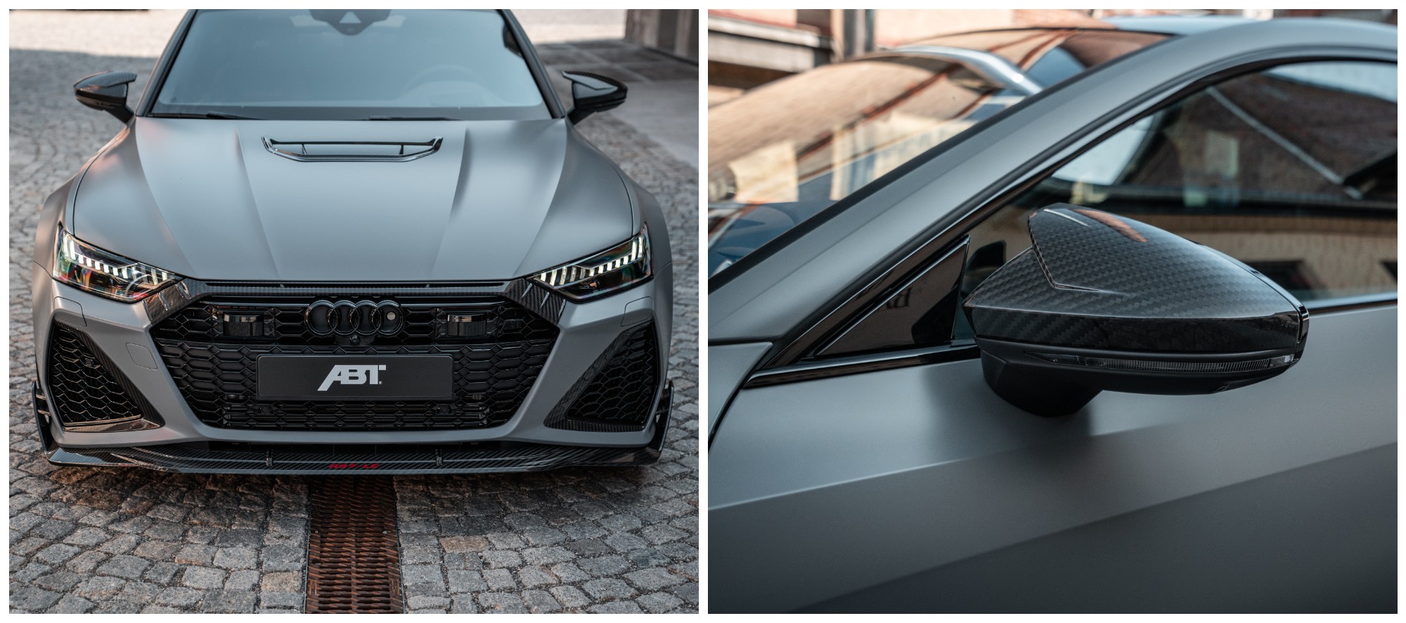 Yếu tố góp phần không nhỏ khiến ABT RS7-LE trở nên đặc biệt về mặt hình ảnh là bề mặt “Signature Carbon Bold” ứng dụng trên các bộ phận bổ sung. Ngoài miếng chèn ABT Carbon tích hợp vào nắp ca-pô, cấu trúc nổi bật còn được tô điểm gờ trước với các cánh gió trước tích hợp, miếng chèn ốp sườn trước, miếng dán lưới tản nhiệt phía trước, miếng đính kèm nắp gương, tấm chắn bên, phần chèn chắn sau, cùng cánh sau… hiện có giá đỡ độc lập và được thiết kế mới so với mẫu tiêu chuẩn. Để có sự phối hợp ăn ý nhất, ABT Sportsline đã lắp đặt hệ thống giảm thanh ABT hiện đại làm bằng thép không gỉ.