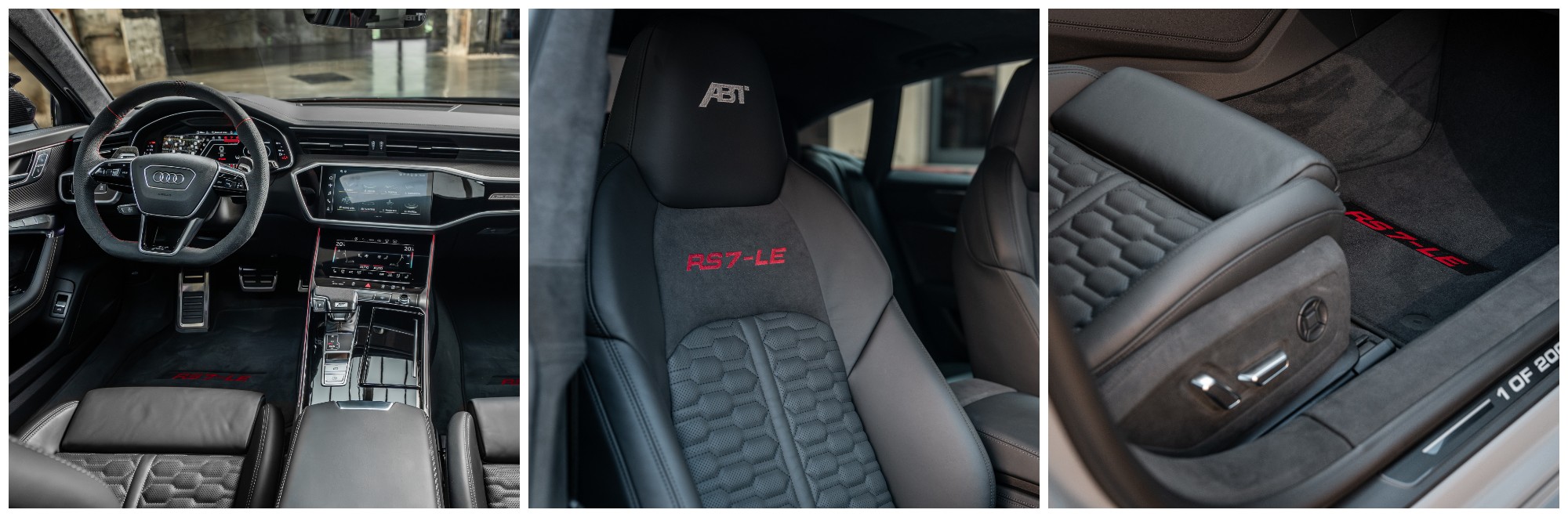 Vô lăng ABT nổi bật với lớp bọc Alcantara chất lượng cao và vạch 12 giờ thể thao tỏa sáng màu đỏ kín đáo qua vật liệu đục lỗ. Mỗi vô-lăng ABT đều có đầy đủ các cảm biến, tương tự như vô-lăng nguyên bản Audi. Những sửa đổi khác đối với nội thất của ABT RS7-LE bao gồm đèn chiếu sáng cửa ra vào và nắp công tắc start-stop.