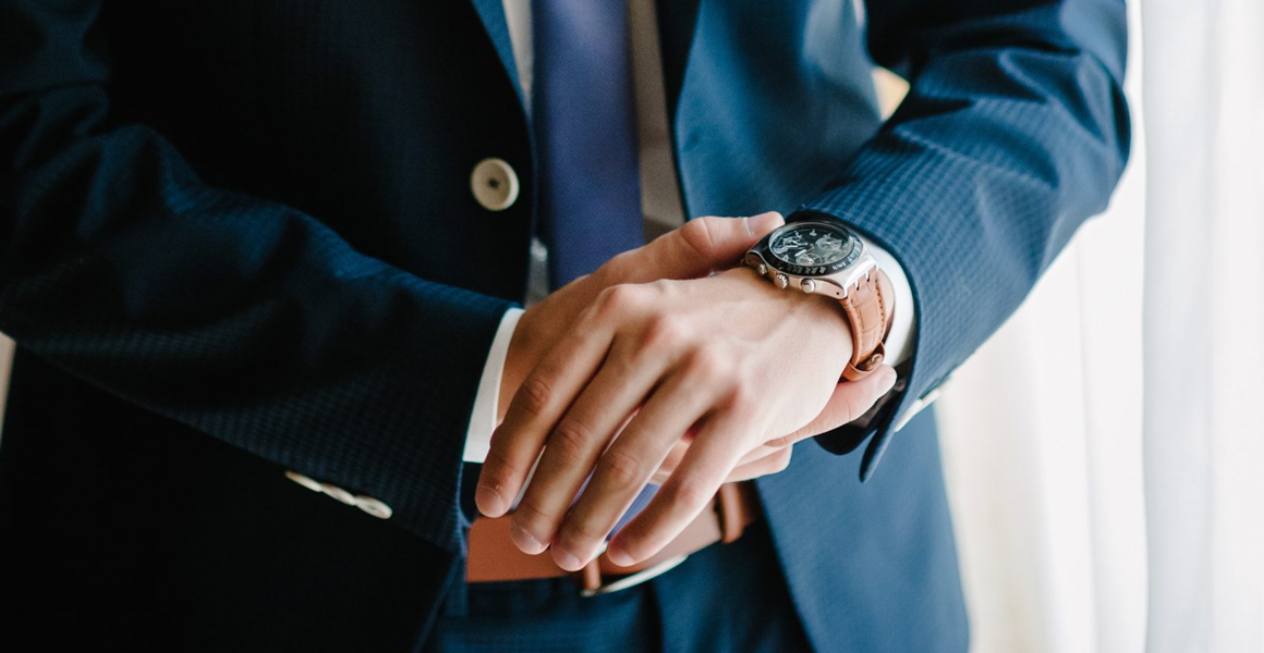 Trên cổ tay là chiếc đồng hồ lịch lãm đầy sang trọng, chú rể ngóng trông từng giây từng phút nhẹ nhàng trôi qua.