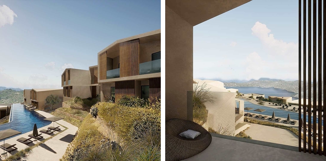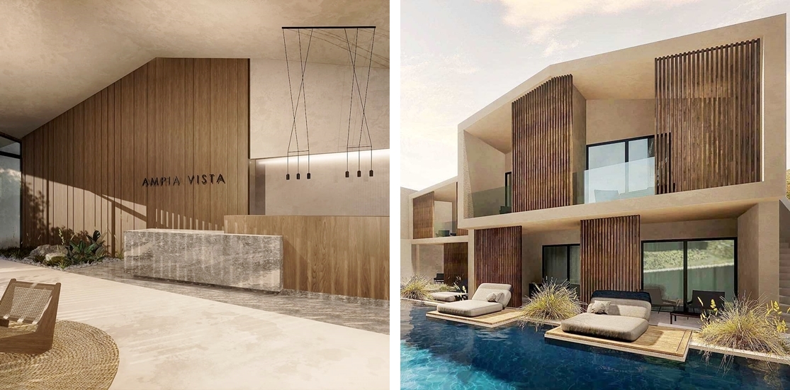 hu phức hợp khách sạn boutique bao gồm 34 phòng đôi, tám phòng ba, sáu suite sang trọng, nhà hàng phục vụ đồ ăn, uống tiêu chuẩn cao và một trung tâm chăm sóc sức khỏe. Cái tên bắt nguồn từ ý nghĩa của cụm từ ‘ample view’, là yếu tố chính của khu nghỉ dưỡng. Yêu cầu chính đối với thiết kế là tất cả các phòng cùng tiện nghi phải cung cấp tầm nhìn không bị cản trở ra biển Ionian.