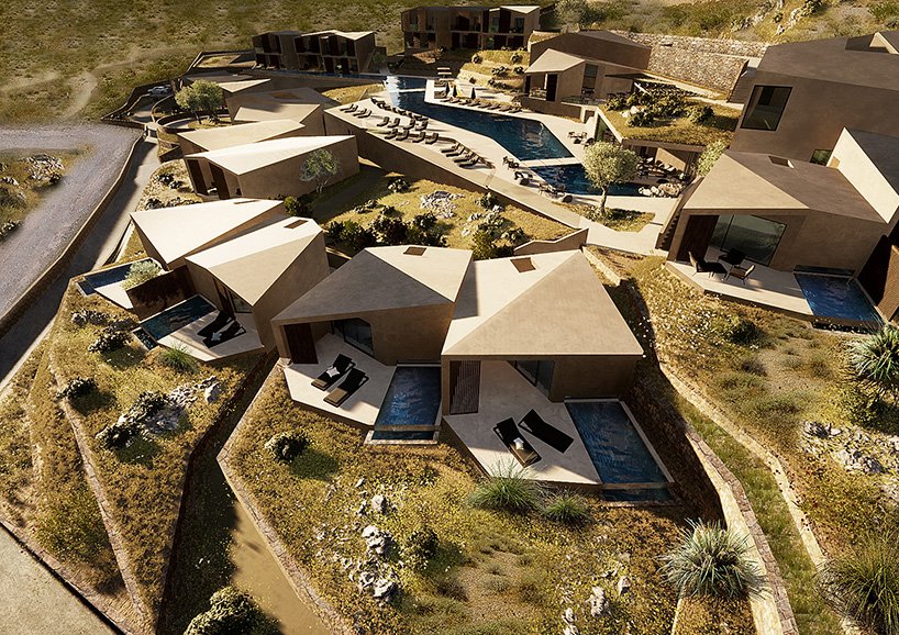Ẩn mình trên phần đất dốc dọc phía nam đảo Meganisi – Hy Lạp, Ampia Vista Retreat nhìn ra vịnh xanh ngát một màu là chốn dừng chân tuyệt vời. Theo ý tưởng thiết kế của đội ngũ kiến trúc sư Barault, các khối nhà kết nối với nhau như dây xích và neo quanh một hồ bơi lớn hình zic zac, đóng vai trò tâm điểm giúp khách di chuyển dễ dàng hơn trong khu phức hợp.