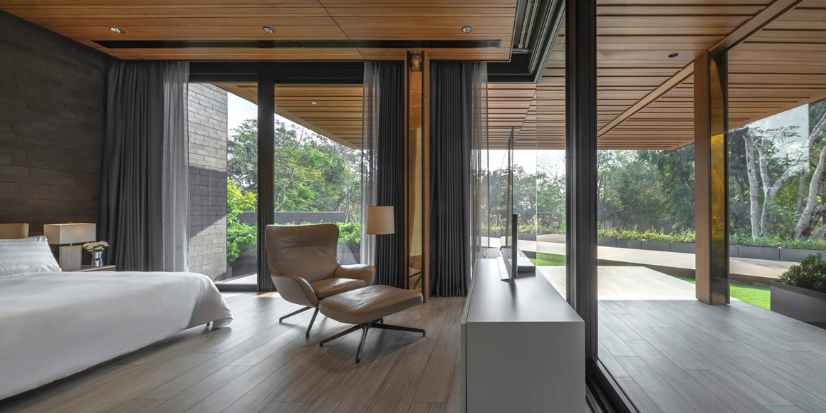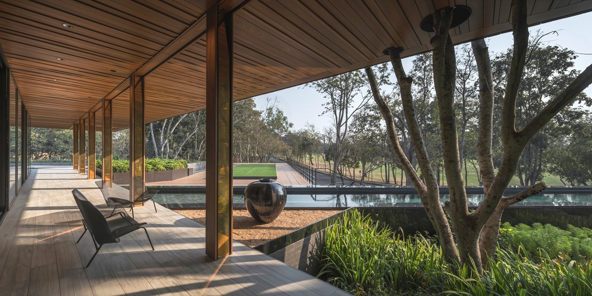 Để tôn vinh tình yêu thiên nhiên của gia chủ, thiết kế của ngôi nhà được lấy cảm hứng rất nhiều từ các yếu tố tự nhiên. Ý tưởng mà đội ngũ kiến trúc sư đưa ra là sử dụng đồng thau – chất liệu thường được tìm thấy trong các cung điện hoặc đền thờ. Các chi tiết đồng thau không chỉ mang đến nét hiện đại và phản ánh sở thích sang trọng của gia chủ mà còn tạo điểm nhấn cho lối thiết kế vốn đơn giản và bình dị của ngôi nhà.
