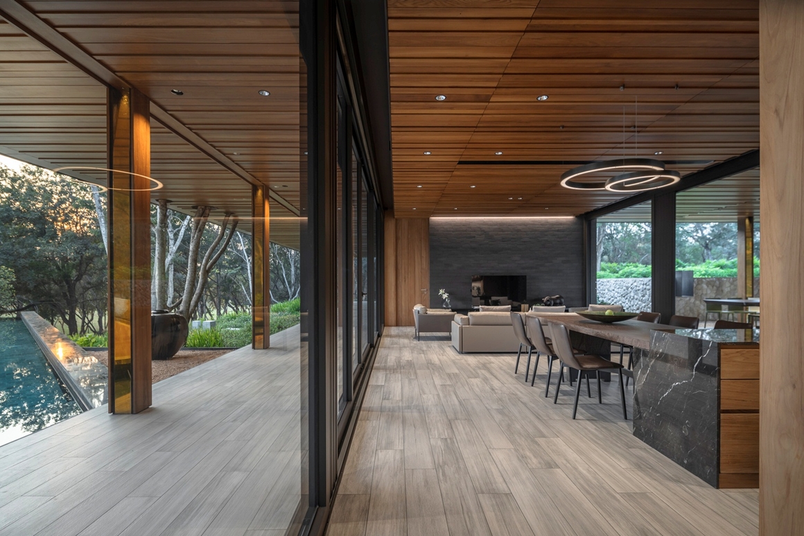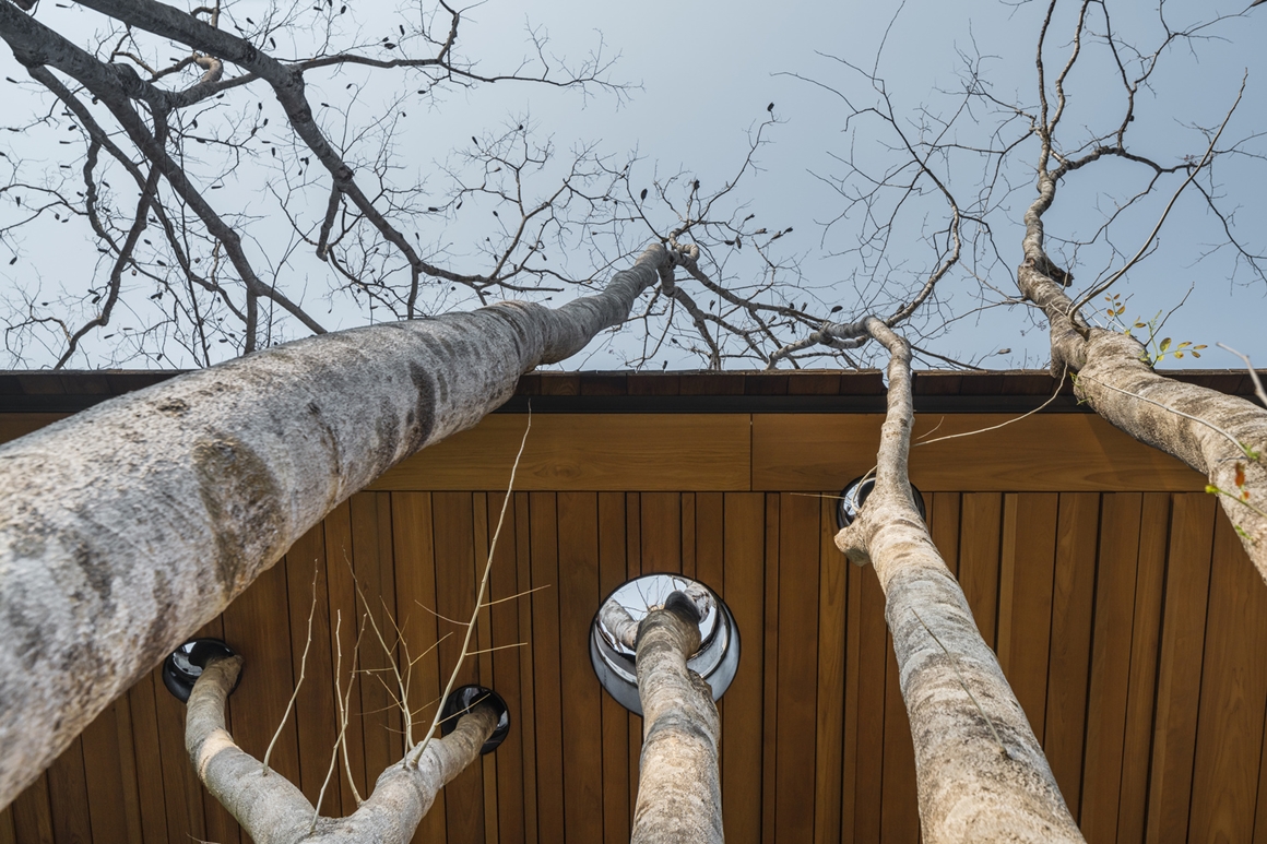Theo đó, toàn bộ cây cối và mái dốc đều được giữ nguyên, trở thành một vật trang trí tuyệt vời cho căn nhà và chính công trình kiến trúc ngoạn mục cũng là điểm nhấn thu hút cho khu rừng. Ranh giới giữa thiên nhiên và kiến trúc hoàn toàn bị xóa nhòa, thay vào đó là sự hòa hợp, tôn nhau lên để cùng mang đến một tuyệt tác nghệ thuật kỳ công.