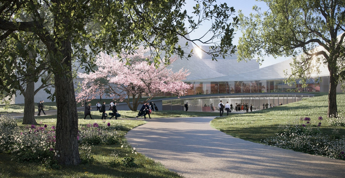 Studio kiến ​​trúc cho biết thêm: “Tính vật chất của lớp vỏ toà nhà không chỉ tạo ra hiệu ứng gợn sóng phản chiếu làn nước lấp lánh của sông Danube, phản ánh cảnh quan thay đổi qua các mùa mà còn báo hiệu một điểm hoà nhập văn hóa mới”.
