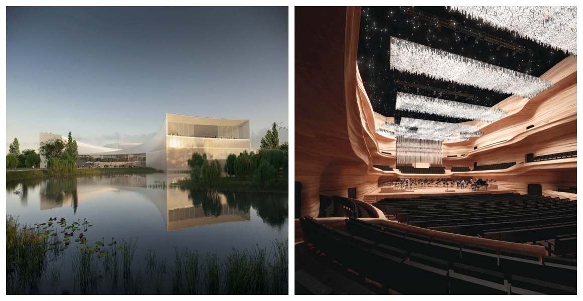 Phòng hòa nhạc gồm bốn khối nhà hình vòng cung, chứa tổng cộng 1600 chỗ ngồi, một sân khấu, một phòng biểu diễn và một trung tâm sáng tạo.