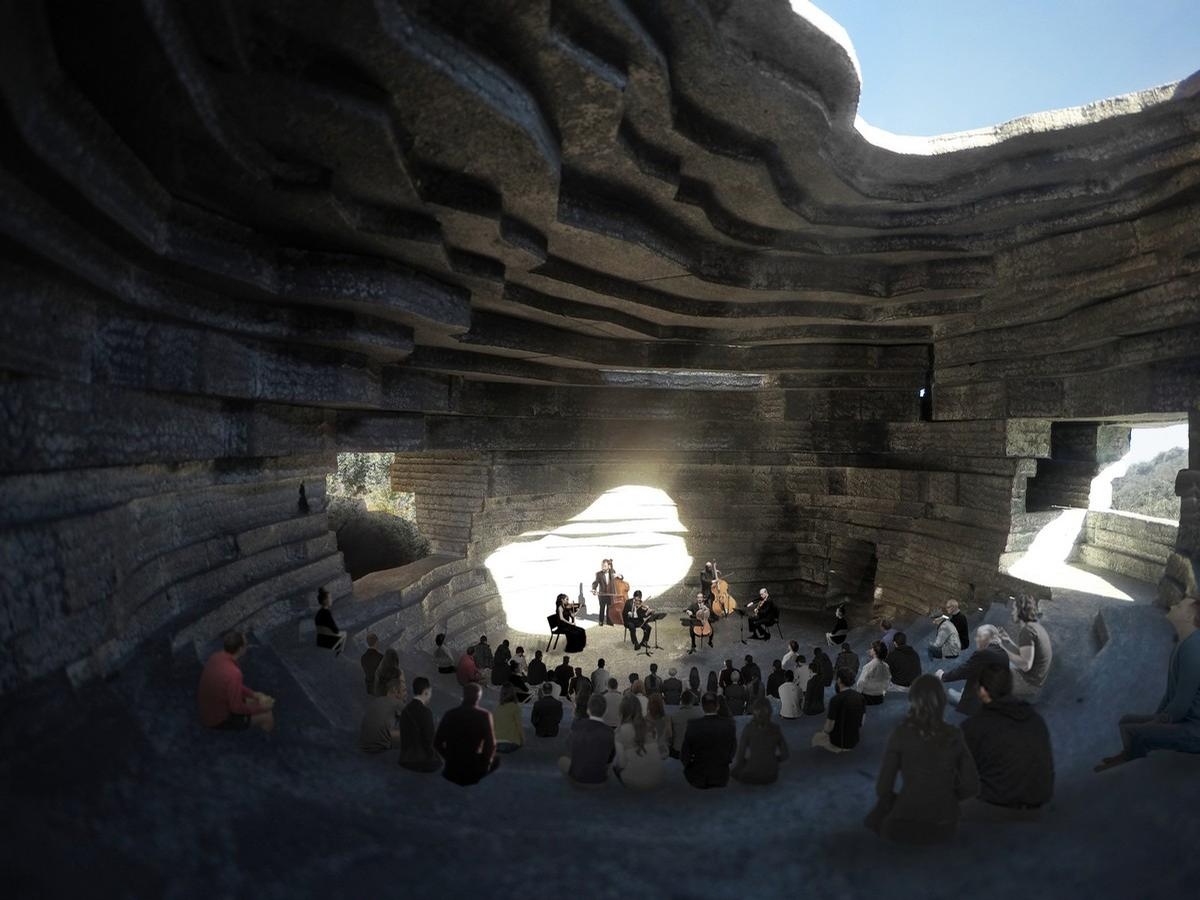 Dự án định nghĩa lại khái niệm truyền thống về không gian biểu diễn, khai thác âm thanh tự nhiên và tầm nhìn toàn cảnh thung lũng xung quanh. Lấy cảm hứng từ hình dạng hữu cơ của các khối đá tự nhiên, Chapel of Sound bao gồm một hội trường vòng tròn, mang tới cho du khách cảm giác được bao bọc bởi bầu trời phía trên.
