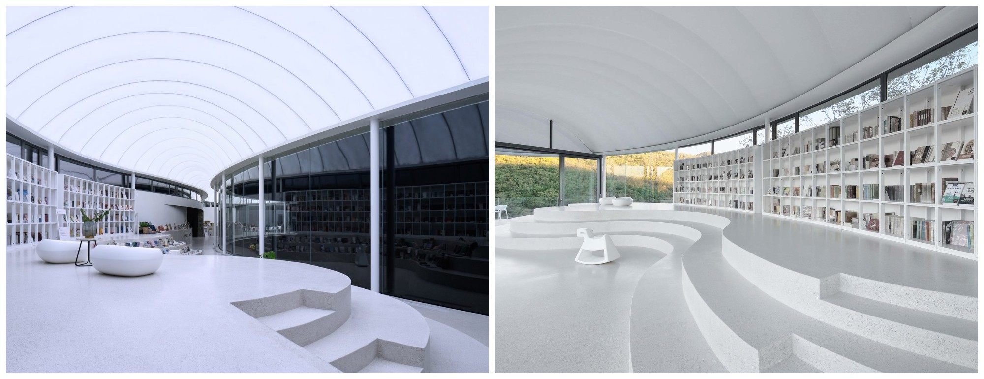 Lấy cảm hứng từ vẻ đẹp tinh khiết của giọt nước, Water Drop Library thai nghén bởi 3andwich Design / He Wei Studio minh chứng cho sự sang trọng tối giản
