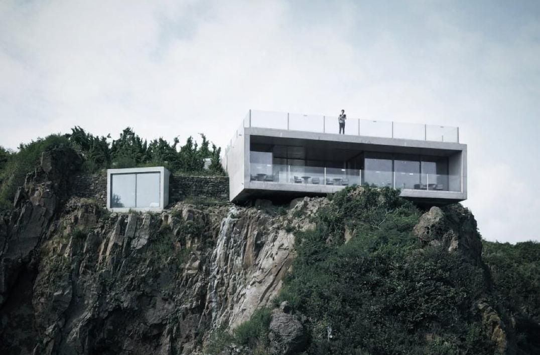 Nằm trên địa hình gồ ghề của Jiming Land – đảo ở Uy Hải, Cliff Café do Văn phòng Kiến trúc Trace (TAO) sáng tạo, trở thành hình mẫu kiến trúc hài hòa, tôn trọng và nâng cao vẻ đẹp quang cảnh thiên nhiên. Quán cà phê và nhà khách này dễ dàng hòa liền mạch vào vách đá, mang đến tầm nhìn tuyệt đẹp, không bị cản trở ra biển, mang tới nơi trú ẩn thanh bình cho du khách.
