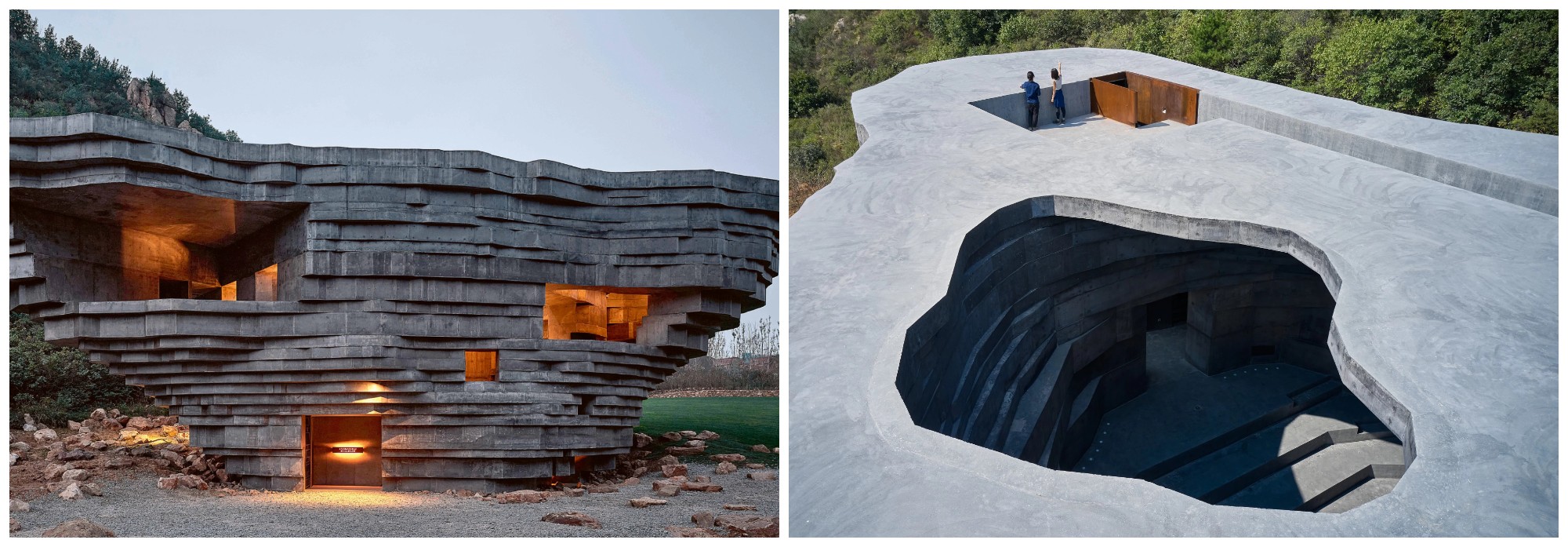 Chapel of Sound, do OPEN Architecture đảm trách, nổi bật như một kỳ quan kiến trúc nằm giữa khung cảnh núi đá gần thủ đô Bắc Kinh
