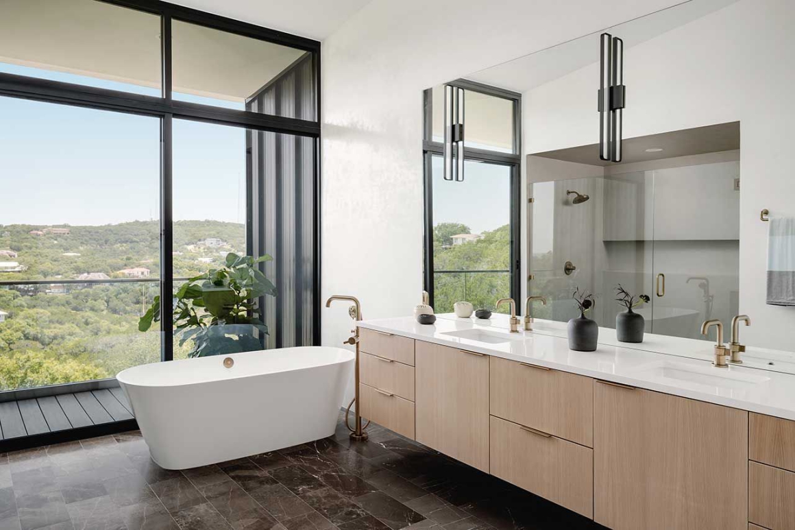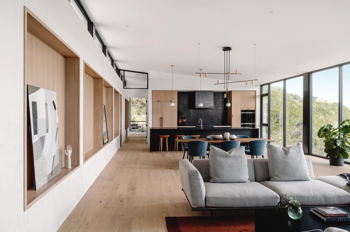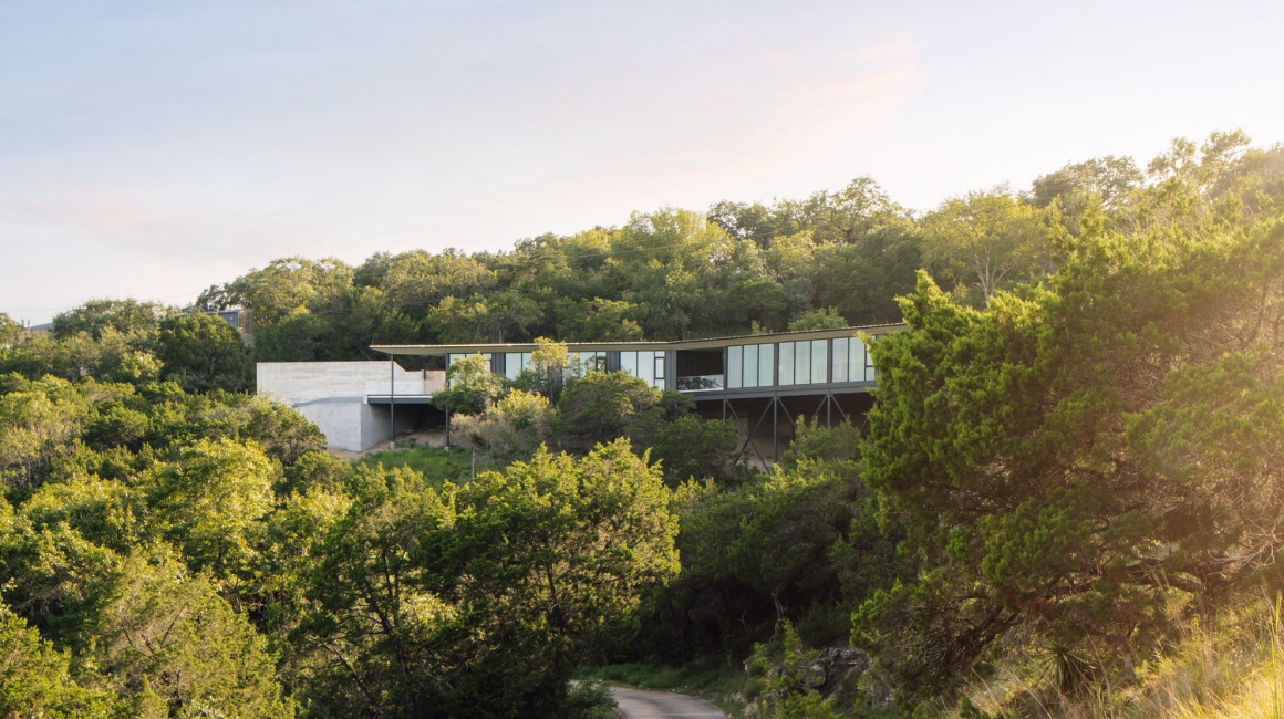 Nhìn ra cảnh sườn đồi rợp bóng cây phía xa, ngôi nhà ngập tràn ánh sáng trời The High Road ở Austin – Texas, là dự án độc đáo vừa được hoàn thành bởi Ravel Architecture. Không gian sống hiện đại này sở hữu hình dạng đặc biệt lấy cảm hứng từ boomerang.