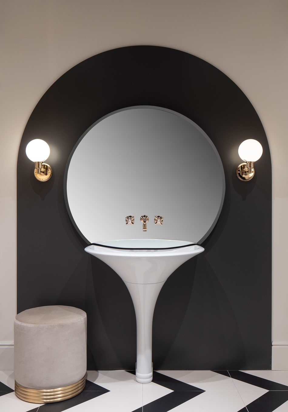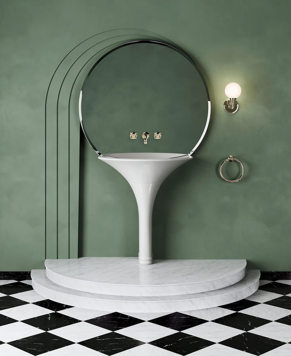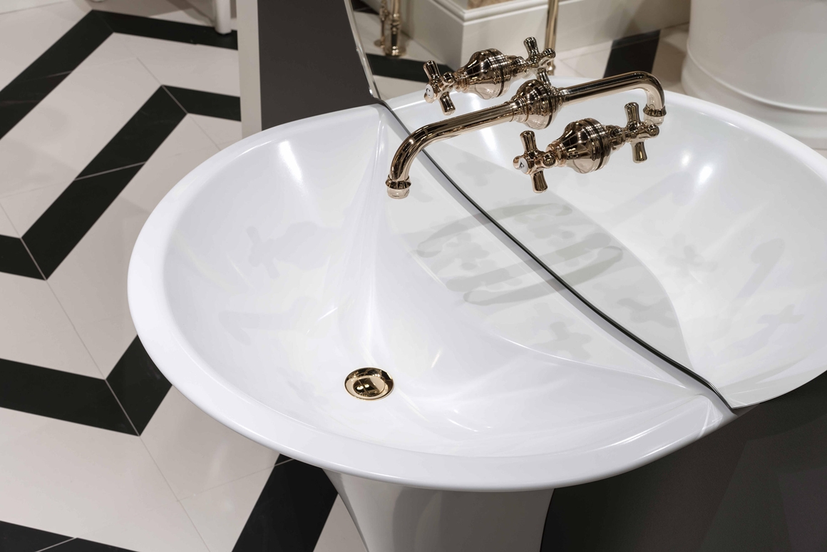 ây là kết quả của sự hợp tác của Devon&Devon với Massimo Iosa Ghini – cái tên nổi tiếng trong giới kiến trúc đương đại, tái hiện lại những cảm hứng cổ điển theo phong cách đương đại đầy tinh vi với bồn rửa mặt mô phỏng hình tràng hoa độc đáo, kết hợp ăn ý với chiếc gương tròn cỡ lớn treo phía trên. Phần thân chậu rửa được làm hoàn toàn bằng White Tec – vật liệu xanh đóng vai trò chính trong việc giúp Devon&Devon dành giải thưởng lần này.
