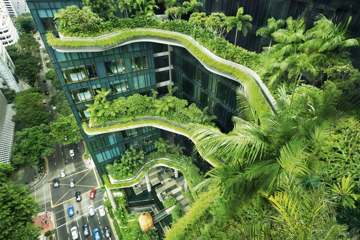 Để đưa cảnh quan tự nhiên len lỏi vào trong các thiết kế không gian ở nông thôn chắc chắn là khả thi hơn so với ngoài đô thị nhưng WOHA, một công ty kiến trúc có trụ sở tại Singapore, đã có những bước tiến mới đối với kiến trúc theo “thiết kế sinh học” này. Được mệnh danh là “thành phố trong vườn”, nổi bật nhất chính là sân bay “Jewel Changi” đẹp mê hồn với thác nước trong nhà cao nhất thế giới và khu vườn địa đàng “Gardens by the Bay” ở Singapore khiến mọi người đứng ngồi không yên vì ai cũng muốn đến được đây để check – in bởi vẻ đẹp tuyệt vời của không gian này.