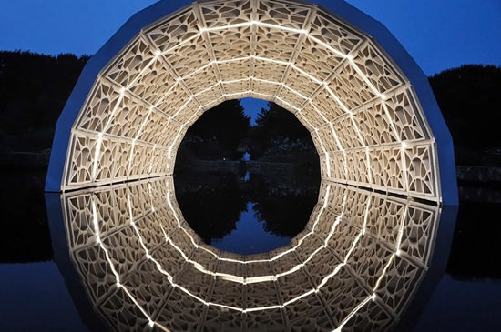 Ngự trên một hồ bơi cạn lấp lánh tại vườn Bách Thảo Olbrich ở Madison, Wisconsin, tác phẩm nghệ thuật công cộng Prairie Cord được thực hiện bởi nhà thiết kế Brian Peters đã thu hút mọi ánh nhìn của du khách bởi vẻ ngoài rực rỡ, kỳ ảo đến khó tin. Nhìn lướt qua, tác phẩm nghệ thuật này tựa như một đường hầm lung linh nổi trên mặt nước được điêu khắc vô cùng tỉ mỉ để tạo ra những lớp xếp tầng cầu kỳ, khiến người ta khó có thể nghĩ rằng đây lại là một sản phẩm của công nghệ in 3D độc đáo.