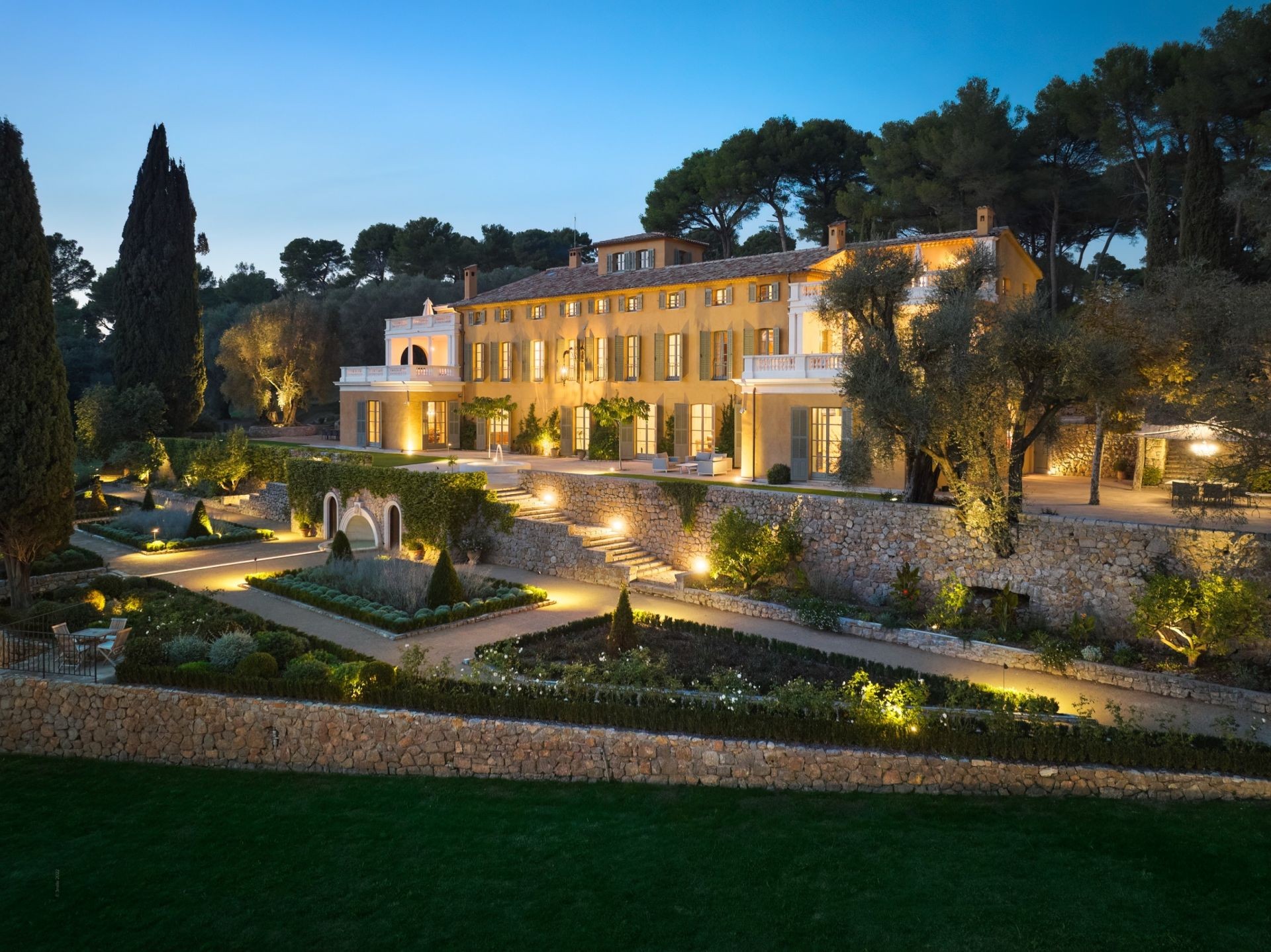 Hanson cũng nhận thấy nhiều chi tiết trang trí bên ngoài – trên cửa ra vào và cửa sổ – phù hợp bản phác thảo thực hiện bởi Lutyens, còn khu vườn bậc thang cùng các bậc đá – một giải pháp phù hợp với địa hình dốc xung quanh ngôi nhà – chắc chắn là thiết kế của kiến trúc sư. Ngôi nhà còn có một hồ bơi lớn, sân tennis, phòng tập thể dục, không gian dành cho quản gia và – điển hình ở miền nam nước Pháp – sân chơi môn bi sắt. Tất cả tiện ích nép mình dưới tán những cây ô liu dường như đã nghìn năm tuổi.