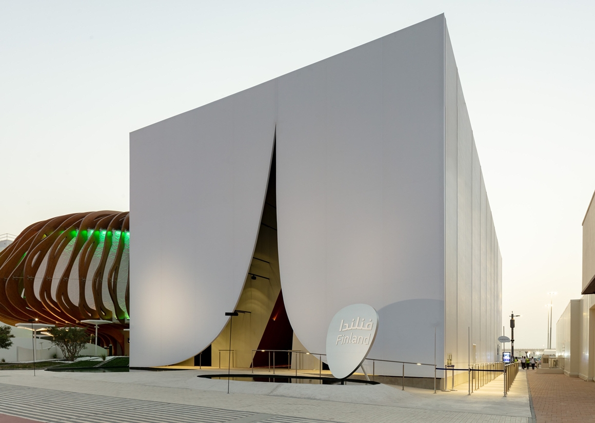 Đề cao mối quan hệ bền vững và sâu sắc giữa con người Phần Lan với thiên nhiên, các bậc thầy sáng tạo của công ty kiến trúc JKMM gây ấn tượng với hình ảnh của một chiếc liều trại phủ đầy tuyết bởi lớp ngoại thất màu trắng, có tên gọi là ”áo choàng tuyết”.