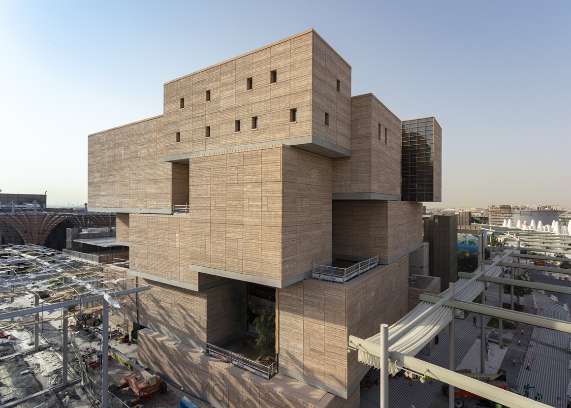 Ghé qua gian triển lãm của Ma-rốc, du khách sẽ được chứng kiến kiệt tác đồ sộ của công ty kiến trúc OUALALOU + CHOI, bao gồm 22 khối hình học được xếp chồng lên nhau, trải rộng 4.000 mét vuông và có mặt tiền cao 33 mét. Sự kết hợp giữa nội thất bằng gỗ và sàn làm bằng đất là một ví dụ điển hình về phương pháp xây dựng theo truyền thống của Ma-rốc tích hợp với hệ thống làm mát cả tòa nhà. Ngoài ra, OUALALOU + CHOI hy vọng công trình thiết kế khổng lồ này có thể truyền cảm hứng cho các mô hình phát triển đô thị bền vững hơn trong tương lai.
