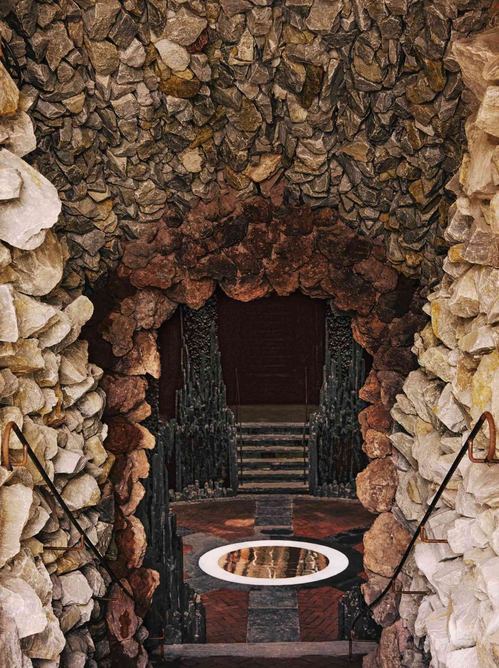Grotto Fabulous được xây dựng trên nền tảng cảm hứng từ Grotto của Tethys tại Versailles, nơi từng được thiết kế bởi André Le Nôtre. Không gian này được bao bọc bởi các bức tường đá tận dụng các khối basalt, từ đó mang đến vẻ đẹp huyền bí của những giấc mơ cổ tích. Một mái vòm vàng óng ánh với một lỗ thông thiên dẫn ánh sáng vào bên trong, phản chiếu hình ảnh của những bức tường thô sơ và những cột trụ cổ điển được trang trí bằng than được nung nóng, tạo nên cảm giác như đang lạc vào một hang động kỳ diệu ẩn nấp sâu dưới mặt đất, cách xa vầng thái dương.