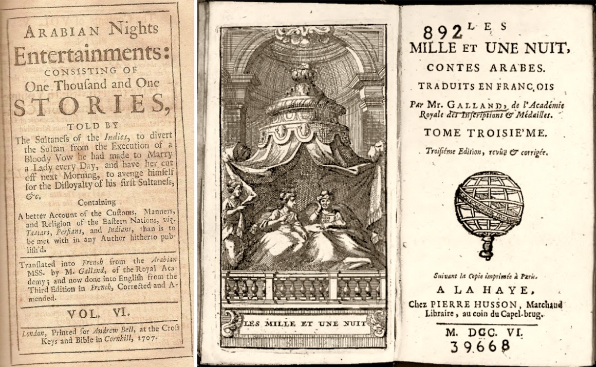 Nghìn lẻ một đêm lần đầu tiên được giới thiệu với châu Âu rồi từ đó phổ cập hầu như rộng khắp trên toàn thế giới nhờ công lao của một học giả người Pháp: Antoine Galland. Khi quyển sách sắp được in hoàn thiện, dịch giả mới khám phá ra rằng các mẩu chuyện này thực ra bắt nguồn từ “một pho đồ sộ gồm nhiều tập đề là Nghìn lẻ một đêm”. Ông liền nhờ người tìm kiếm hộ, nhưng rốt cuộc chỉ có bốn tập được gửi đến từ Syria. Antoine Galland dịch ngay tập đầu tiên và cho xuất bản vào năm 1704. “Món quà nhỏ mọn” như lời ông viết trong thư gửi tặng hầu tước phu nhân O, lập tức được hoan nghênh nhiệt liệt. Theo sau đó, cả triều đình nghị viện, từ giai cấp tư sản cho đến các tầng lớp nghèo hèn, những ai biết chữ ở nước Pháp đều tranh nhau quyển sách để hoà vào những mẩu chuyện nhiệm màu.