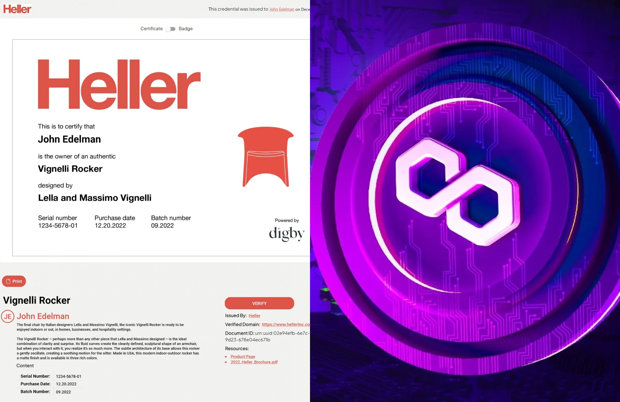 Công ty công nghệ Digby đã hợp tác với thương hiệu nội thất Mỹ Heller để ra mắt một ứng dụng thiết lập tính xác thực của các sản phẩm vật lý thông qua kỹ thuật hiện đại. Được đặt tên là Digby Design Authenticator (DDA), hệ thống này cho phép những nhà thiết kế và thương hiệu liên kết từng danh mục sản phẩm với mã thông báo NFT như một chứng chỉ thể hiện chất lượng cao cấp.