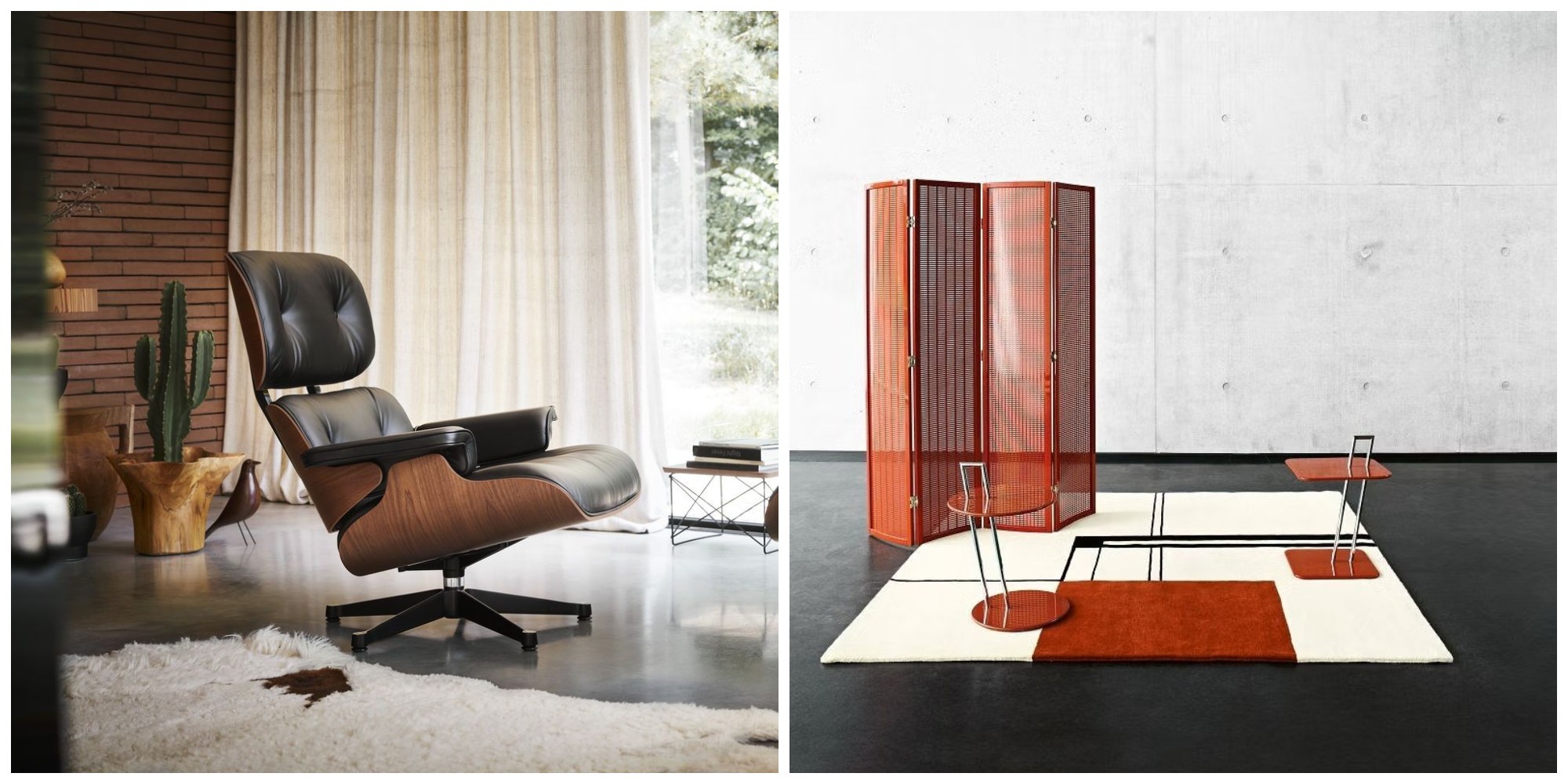 Trái sang phải: Eames Lounge Chair and Ottoman (1956) và Folding Screen (1930)