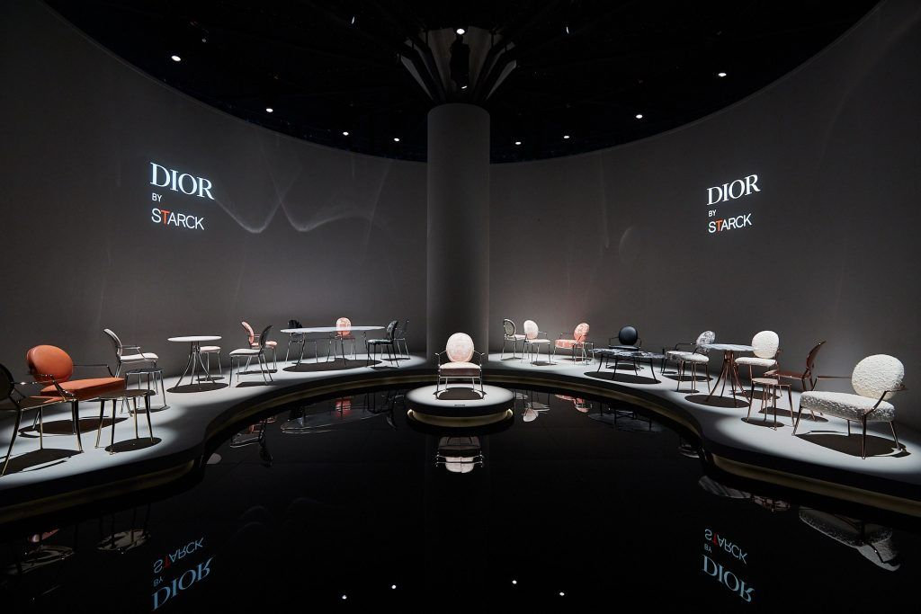 Tham gia ngày hội triển lãm quy mô này, Dior đã trình bày những tạo tác ấn tượng và hấp dẫn nhất của họ. Ra đời từ sự kết hợp giữa thương hiệu nước Pháp và nhà thiết kế vĩ đại Philippe Starck, chiếc ghế Monsieur Dior sở hữu vẻ ngoài tinh xảo cùng với những đường nét nhẹ nhàng uyển chuyển. Ông đã hoàn thiện mọi cấu trúc, làm nổi bật các yếu tố mang tính biểu tượng nhất, chẳng hạn như hoa văn toile de Jouy có màu trắng, hồng và cam bắt mắt. Ngoài ra, những mẫu thiết kế như ghế Medallion, ghế Miss Dior hay Miss Dior Sweet cũng được trưng bày theo cách đầy “hư hảo”. Thông qua sự cộng tác với Soundwalk Collective, chúng được bố trí bằng một kỹ thuật rất sống động, giúp tạo ra các động tác nâng lên và hạ xuống theo những hướng ngược chiều nhau như thể trò múa rối trên không trung.