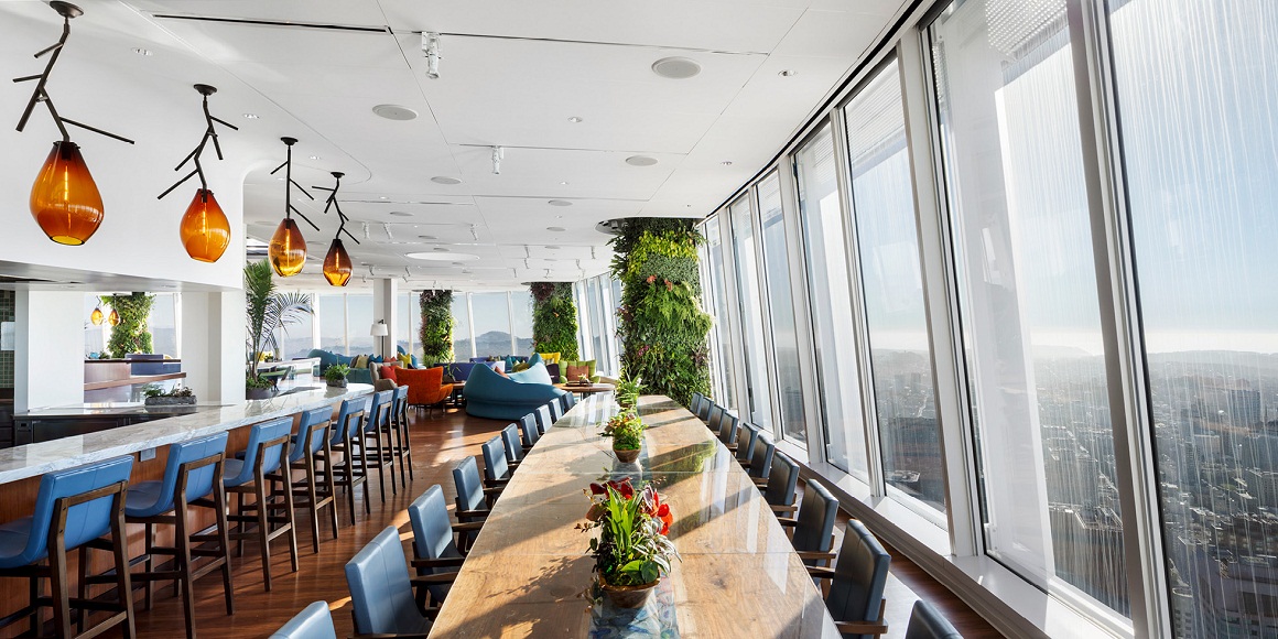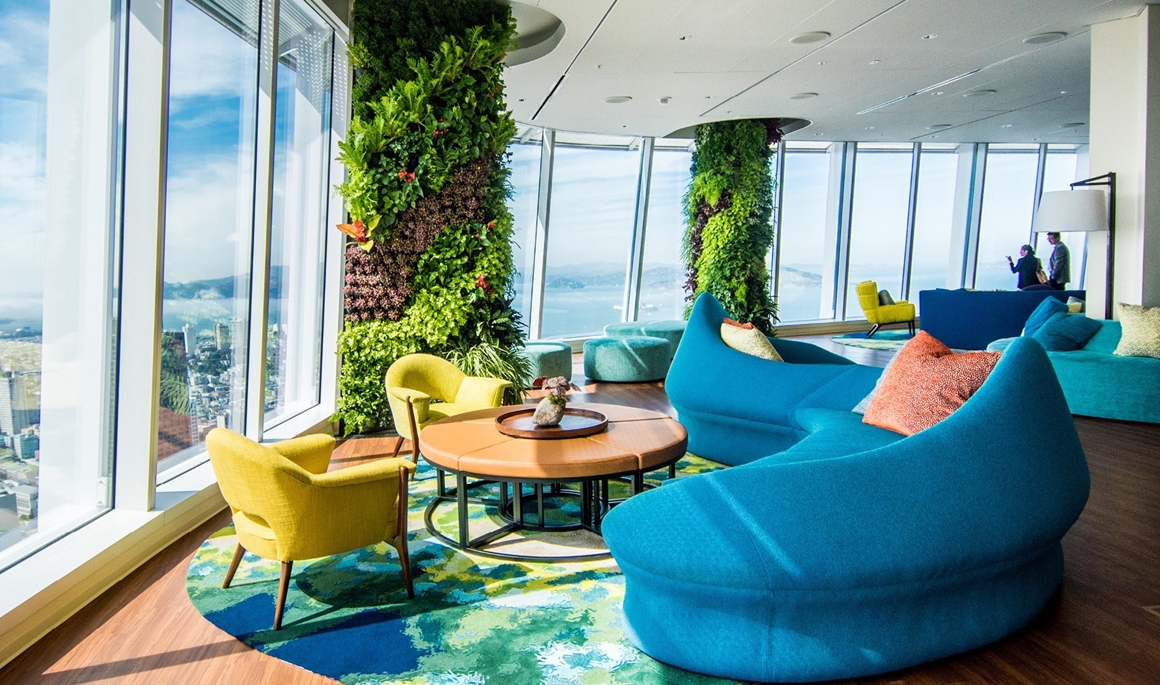 ở hữu độ cao 1.070 feet, tháp Salesforce là tòa nhà cao nhất ở San Francisco. Nằm trên đỉnh trụ sở toàn cầu của công ty chính là “tầng Ohana” – điểm nhấn của không gian khách sạn với tầm nhìn linh hoạt 360 độ có thể ngắm toàn thành phố. Thay vì dành tòa nhà này cho các văn phòng điều hành, đội ngũ kiến trúc sư đã biến 24 cột bao quanh tầng sàn gỗ có kết cấu hình tròn và tạo ra những khu vườn thẳng đứng vô cùng độc đáo và bắt mắt ngay từ cái nhìn đầu tiên.