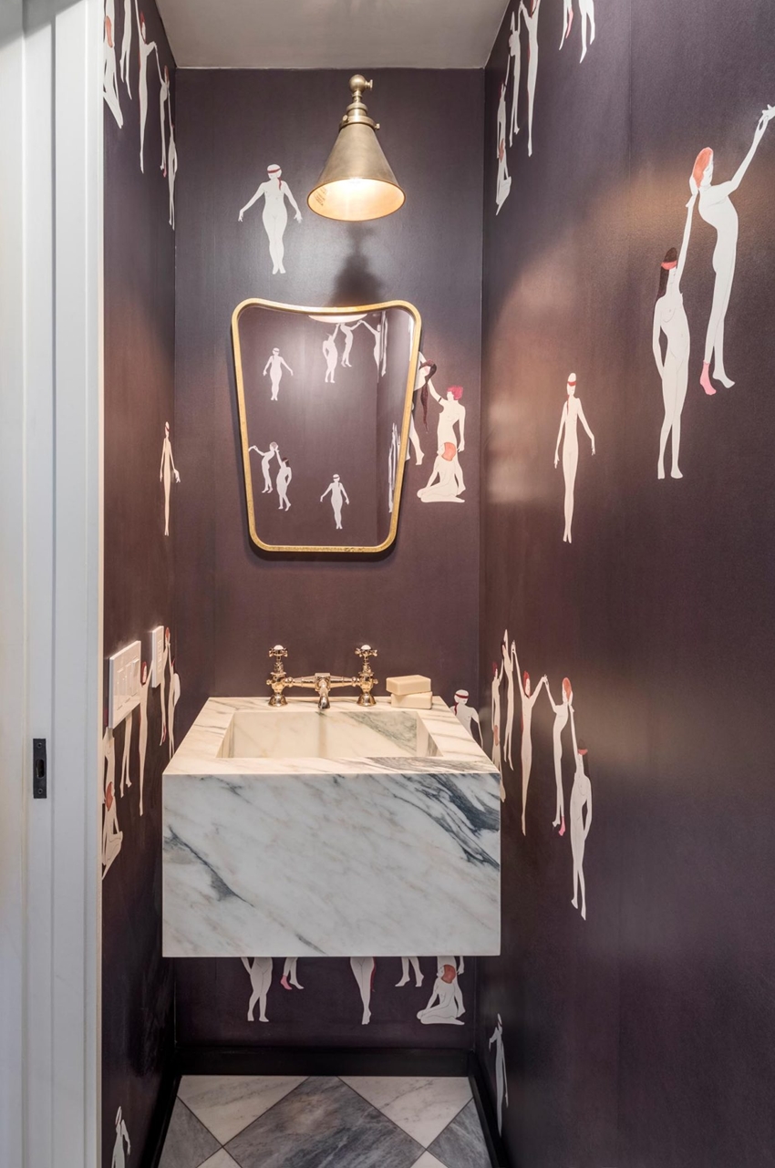 Với cảm hứng từ ngôi phố những năm 1860 ở New York, văn phòng Kiến trúc Barker Associates “rắc thêm” sự vui nhộn cho căn phòng với giấy dán tường tối màu đan xen với những hình ảnh hoạt động con người.