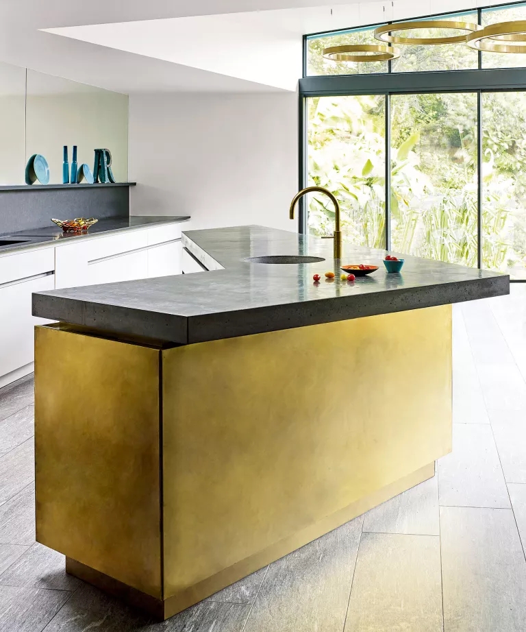 Đừng ngại ngần bước ra khỏi vùng an toàn với đảo bếp sở hữu hình dạng phi cổ điển. Tác động trực quan được tạo ra sẽ rất lớn, giống như cách mà Jane Powell của Roundhouse thiết kế đảo bếp với hình dáng đôi cánh trông như một món đồ nội thất tuyệt đẹp.