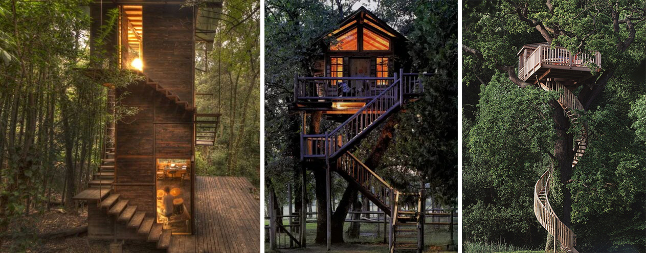 Lối đi lên Treehouse cũng là một yếu tố quan trọng cần lưu ý bởi nó sẽ mang đến ấn tượng ban đầu cho những du khách ghé thăm “căn cứ bí ẩn” này. Có rất nhiều lựa chọn khác nhau, từ cầu thang cổ điển đến cầu dây, đi kèm với đó là các phong cách khác nhau, tùy thuộc vào mục đích dử dụng và sở thích của gia chủ. Một chiếc thanh sang trọng sẽ phù hợp với Treehouse dùng để đón khách trong khi thang dây lại mang đến niềm thích thú cho những đứa trẻ khi được thỏa sức leo trèo, nô đùa.