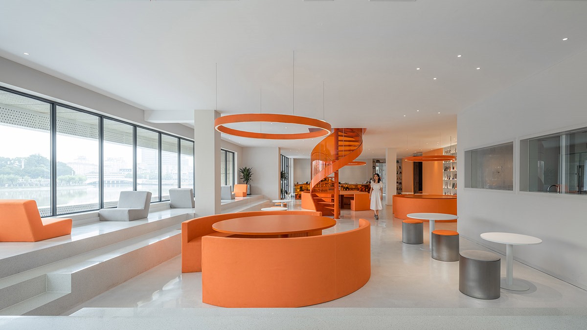 Theo con đường xuyên qua cửa hàng ở tầng trệt, du khách được đến một khu vực dành riêng cho hoạt động văn hóa và sáng tạo. Nơi đây sử dụng bảng màu xanh lam cho các kệ trang trí cũng như đồ đạc trưng bày. Khu vực này cũng được bố trí hai phòng đọc sách riêng biệt cũng như khu vực bán lẻ chính của cửa hàng với quầy thu ngân hình tam giác làm từ bằng acrylic mờ.