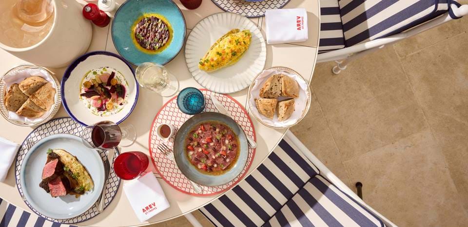 Ẩm thực tại Arev là điểm nhấn khó bỏ qua. Nhà hàng The Strand, hợp tác cùng thương hiệu ẩm thực nổi tiếng Bagatelle, phục vụ thực đơn Provençal hiện đại dưới bàn tay của các đầu bếp từng làm việc cho Alain Ducasse.