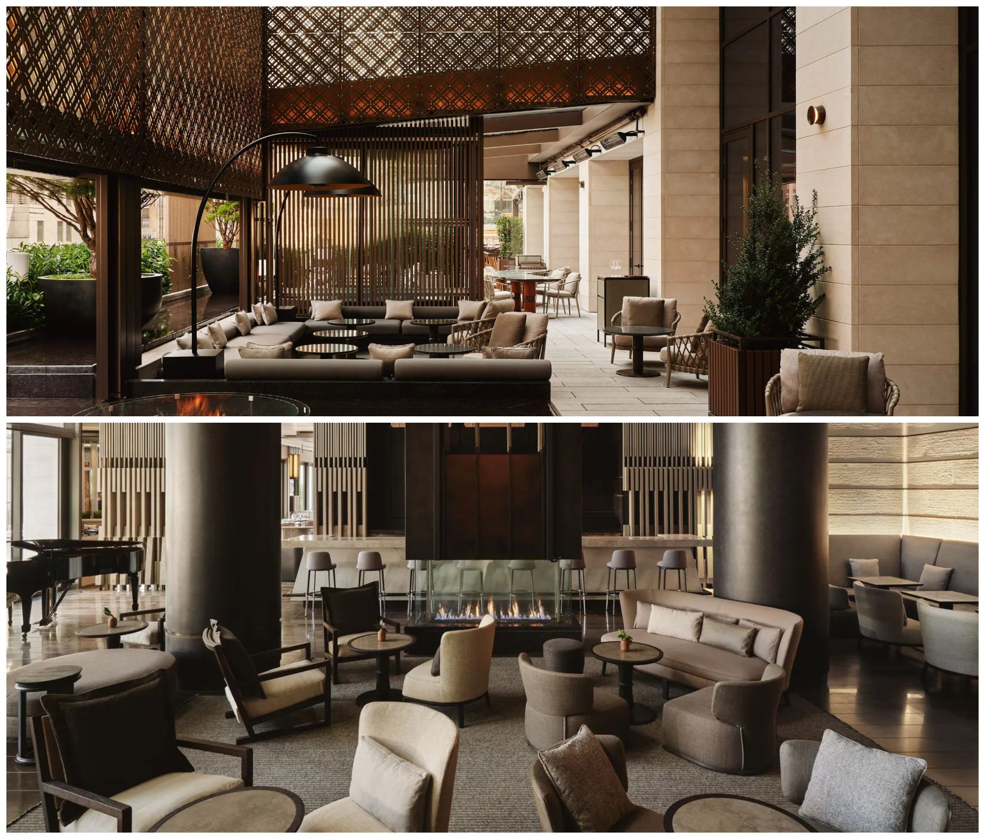 Thay vì một phòng khách có đầy đủ chỗ ngồi và được tạo điểm nhấn bằng cách cắm hoa nghệ thuật và đèn chùm rực rỡ, một cầu thang xoắn ốc màu trắng xuất hiện đơn độc nhưng đầy thú vị ở giữa tiền sảnh tối giản. Quầy bar và phòng ngủ của khách sạn cũng mang đến đẳng cấp vượt trội trong việc ứng dụng bảng màu trắng đầy tinh tế mà không hề gây nhàm chán. Lobby Bar sở hữu nhiều lớp kết cấu màu trắng và kem khác nhau tạo nên cảm giác gợi cảm, đồng thời được củng cố bởi các đồ nội thất cao cấp như ghế sofa Jean-Michel Frank hay bàn billiards đặc biệt mà nhà thiết kế Emmanuel Levet Stenne điêu khắc từ một phiến đá cẩm thạch trắng Bianco Neve.