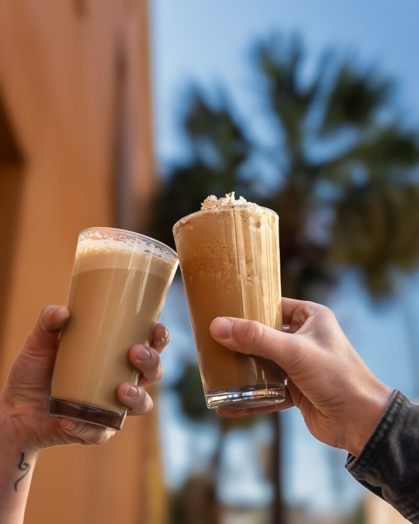 Thức uống Shakerato với espresso và Wide Awake Shake với kem lạnh espresso gelato cùng kem bọt.
