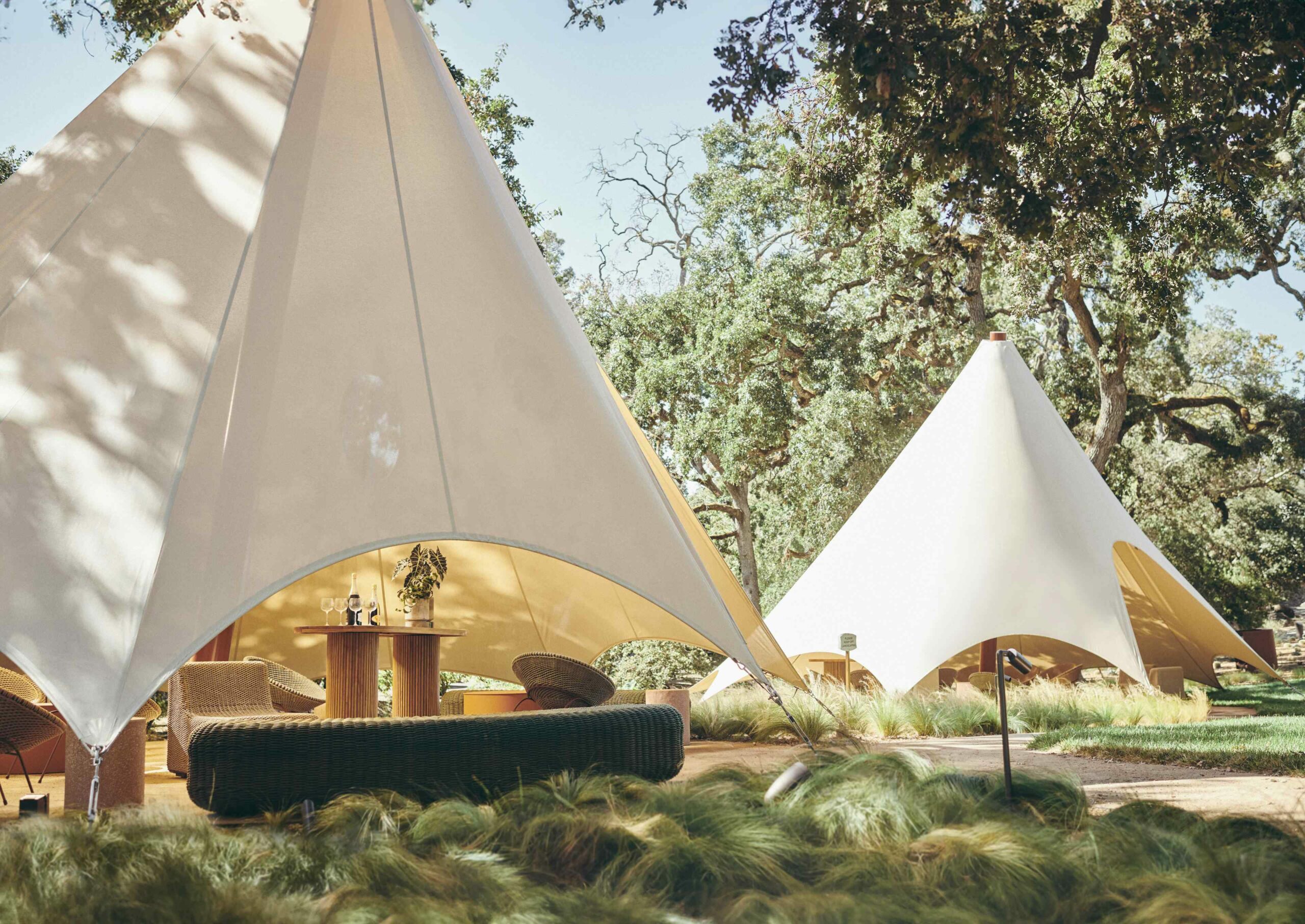 Để tái thiết kế không gian, Chandon đã hợp tác với kiến trúc sư Linda Taalman từ Taalman Architecture, mang đến cho từng khu vực một phong thái xa hoa nhưng vẫn thoải mái và kết nối với thiên nhiên ở mọi cấp độ. Họ cũng hợp tác với những nghệ nhân địa phương của California để thực hiện phần trang trí nội thất, cũng như ứng dụng món đồ trang trí mới một phong cách bản địa độc đáo. Chandon sẽ mang đến cho du khách vô số cách để thưởng thức rượu vang sủi của mình. Các nhóm khách đông vui sẽ rất hào hứng tụ họp trong những căn cabana mới được thiết kế tựa như những chiếc lều kiểu safari nhìn ra toàn cảnh nhà máy. Hãy tìm cho mình một chỗ ngồi thoải mái và nhâm nhi ly rượu Chandon Brut Rosé, cùng với các món ăn kiểu gia đình quen thuộc. Nếu bạn muốn tự tạo niềm vui, hãy đặt trước một giỏ đồ ăn picnic tự chọn để cùng với nguời thân thưởng thức trong khu vườn Chandon vừa được cải tạo, bao gồm các món ăn nhẹ kiểu Pháp truyền thống, salad và món tráng miệng, cùng một chai Chandon Chant des Cigales không đường. Nếu yêu thích những không gian thoáng đãng đầy gió, hãy cân nhắc tham gia buổi thử rượu “Dưới những Cây Sồi” dành cho nhóm từ 2–12 khách để được dẫn đến một trong những boong tàu riêng mình giữa những tán cây sồi của nhà máy rượu. Tại đây, khách được mời ngả mình thư giãn và thưởng thức cảnh quan nên thơ, trong khi một người phụ trách sẽ lần lượt đưa bạn khám phá từng loại rượu quý, gồm các loại rượu hiện đang lưu hành cùng với những loại rượu quý từ kho lưu trữ của hãng, kết hợp với những món ăn nhẹ do đầu bếp của Chandon chuẩn bị.