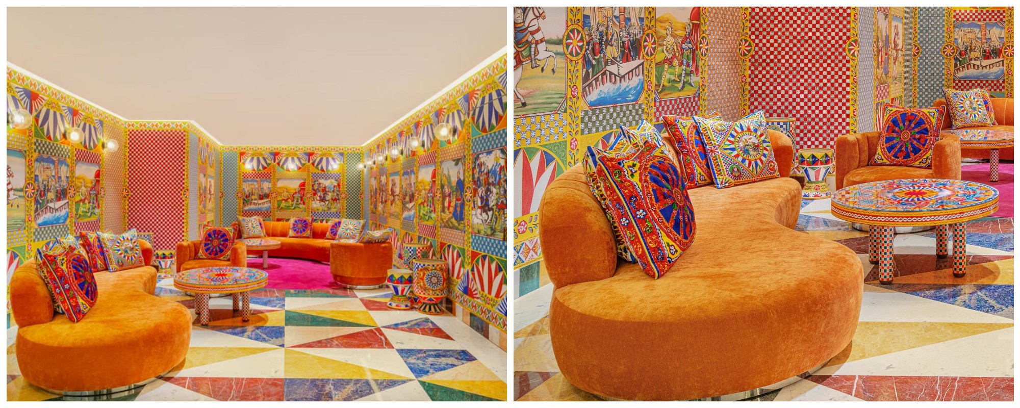 G Caffè minh chứng cho cam kết kết hợp tinh thần thiết kế đặc trưng Dolce&Gabbana với nghệ thuật ẩm thực truyền thống Ý. Theo đó, nội thất thể hiện di sản “đất nước hình chiếc ủng” thông qua việc sử dụng nổi bật họa tiết xe ngựa Carretto Siciliano mang tính biểu tượng, không chỉ phản ánh thẩm mỹ riêng biệt của thương hiệu mà còn gợi liên tưởng đến bầu không khí đặc trưng vùng Địa Trung Hải.