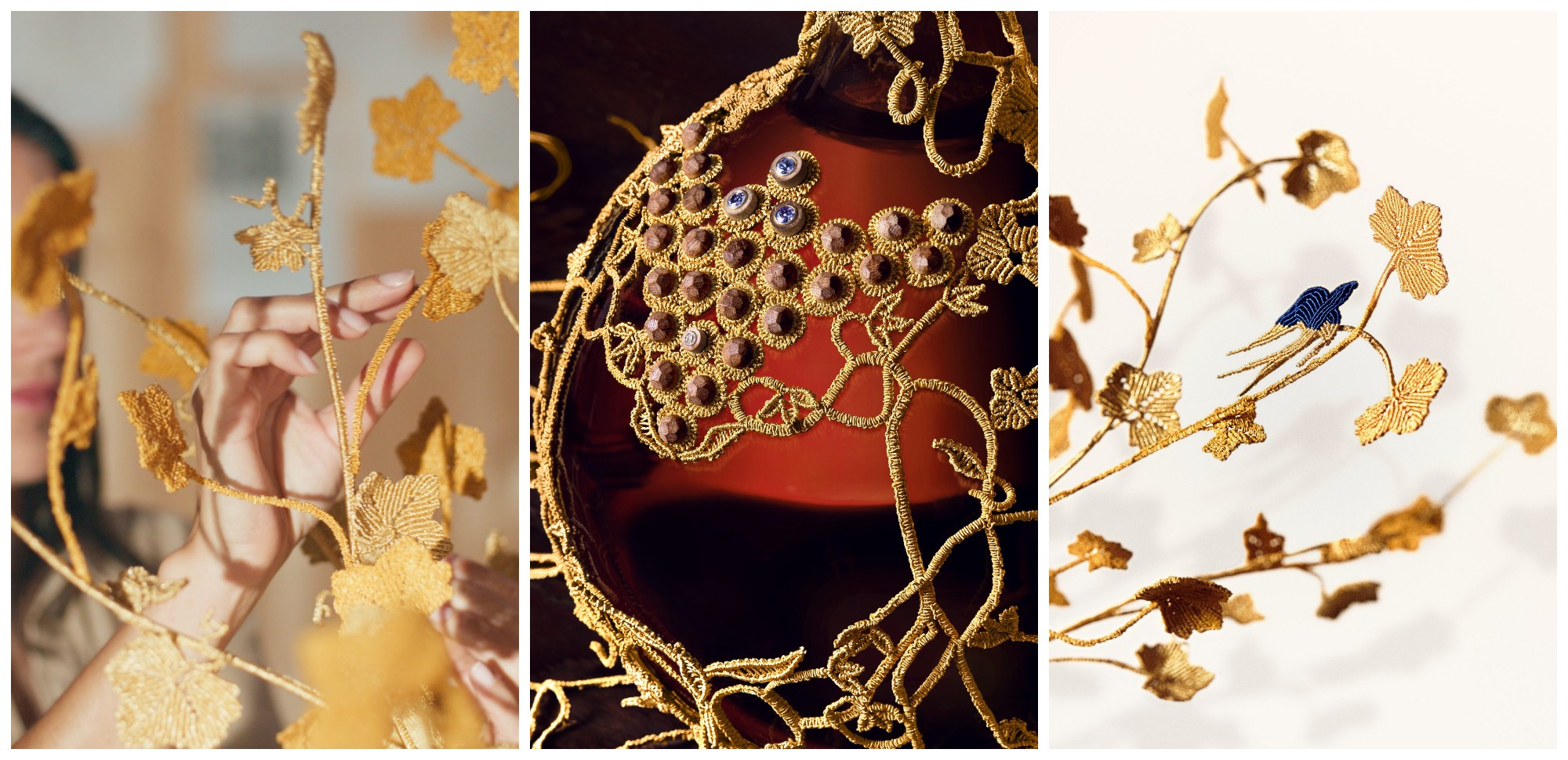 Được làm bằng sợi vàng thật, sáng tạo của Laurentine Perilhou tượng trưng cho hành trình sinh trưởng, kết trái của loại nho làm nên hương vị cognac đặc trưng Martell