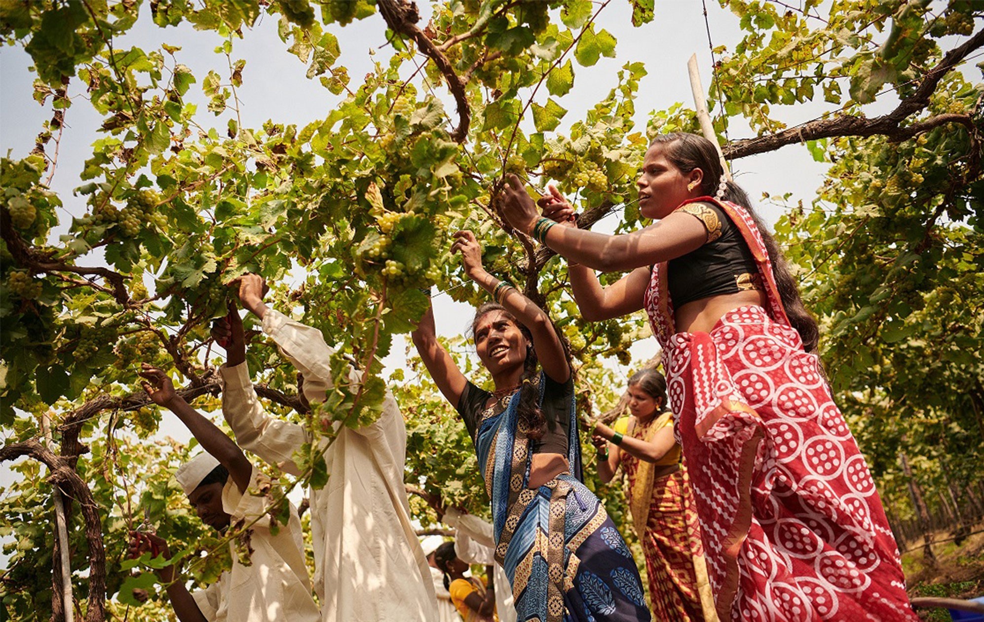 Nông dân hứng khởi thu hái nho để phục vụ quy trình sản xuất