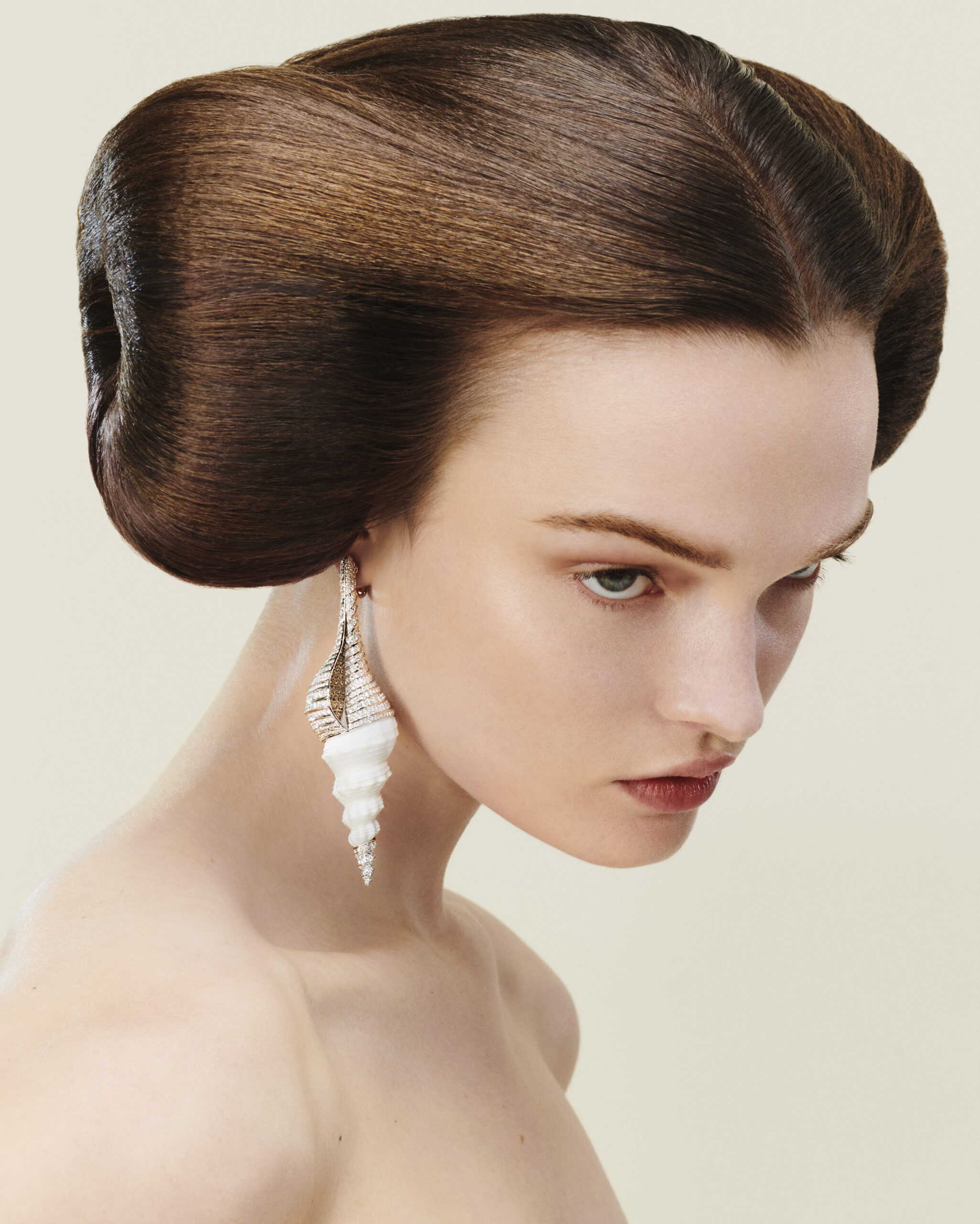 Người phụ nữ tượng trưng cho trái đất sẽ mang vẻ đẹp khỏe khoắn. Nàng mời gọi chúng ta tụng tán sức mạnh của thiên nhiên thông qua bảng màu của đất sét liên kết cùng các hình dạng hữu cơ miêu tả cả thực vật và muôn loài động vật. Trong thế giới này, trâm cài áo Bois Diamant đích thực là tác phẩm nghệ thuật về hoa hiện lên rực rỡ được chế tác tỉ mỉ từ gỗ hồng Santos. Mỗi một trong nhiều cánh hoa rực rỡ này mô phỏng hoàn hảo một bông hoa thực tế. Kể từ bộ sưu tập Nature Triomphante năm 2018, nhà kim hoàn nước Pháp đã làm chủ kỹ thuật quét (scan) cánh hoa thật và sau đó làm chúng bất tử thông qua các vật liệu quý giá hoặc tinh tế. Tăng thêm tính hiện thực cho sự sáng tạo này, các nhụy hoa titan khẽ rung rinh theo từng chuyển động của người đeo. Và, ở đâu có hoa thì ở đó có bướm! Đấy là duyên cớ thôi thúc Boucheron chế tác hoa tai đơn Papillon Diamant tinh xảo với viên kim cương nâu hình quả lê xinh xắn. Không chỉ đậu thoải mái trên vành tai, nó thậm chí còn rập rờn đôi cánh như vui đùa giữa rừng hoa thật.