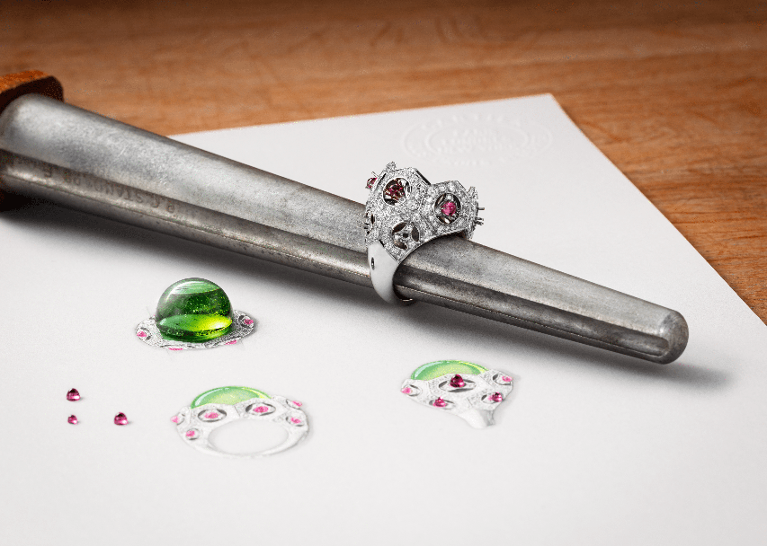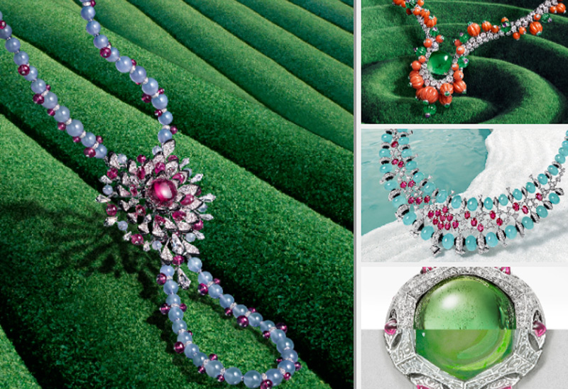 Kim cương hình tam giác, đá Spinel màu tím, Cabochon, đá tourmalines hay kim cương xanh lá cây đều là minh chứng cho sự độc đáo trong các lựa chọn của Cartier. Đối với thợ kim hoàn, mỗi viên đá là một cuộc hành trình mà thông qua chúng, các bảng màu mới mẻ, dịu dàng và nhiều sắc thái khác nhau được khám phá. Trong số đó, các tông màu tươi, thậm chí mạnh mẽ thường đóng vai trò chủ đạo.