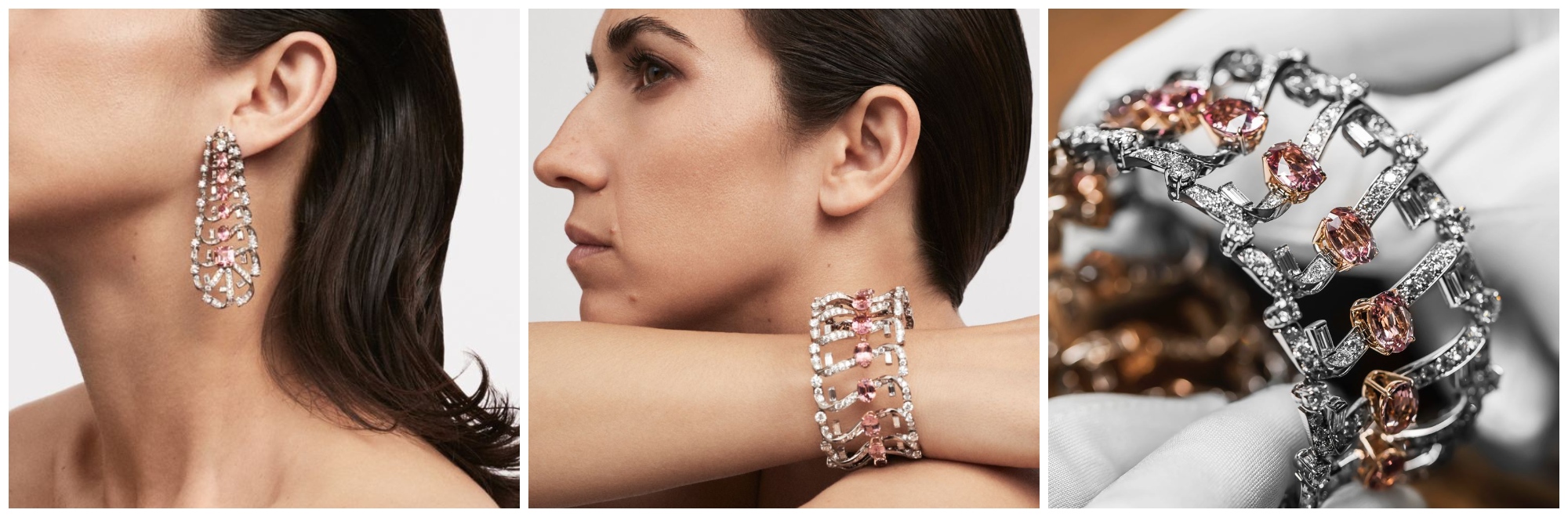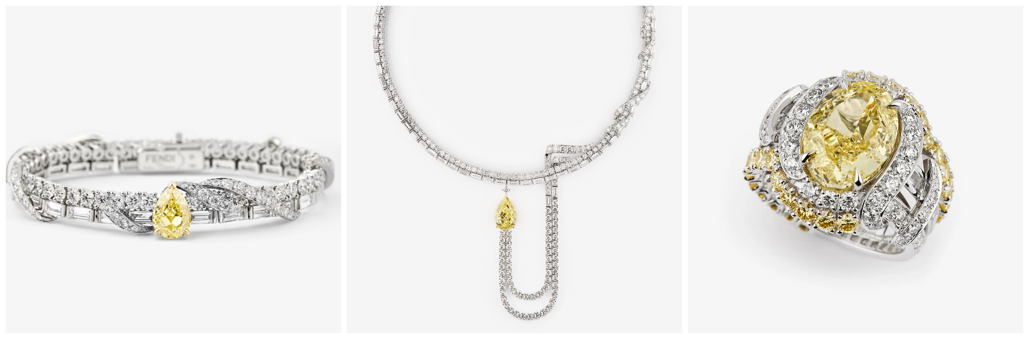 ‘Triptych’ kể một câu chuyện quyến rũ trong vũ điệu ánh sáng và màu sắc tinh tế. ‘Roma Rosa’ ngợi ca sự lãng mạn dành cho màu hồng nữ tính hiển hiện trên những bức bích họa và đá cẩm thạch mờ của Rome, trong khi ‘Gioiello Giallo’ đại diện sắc vàng mang tính biểu tượng Fendi. Cuối cùng, độ tinh khiết rạng rỡ thuộc về kim cương trắng thuần khiết điểm tô Bianco Brillante chuyển tải tính linh hoạt cốt lõi ẩn chứa trong bộ sưu tập. Mỗi chương phản ánh các yếu tố lịch sử Fendi, thể hiện sự kết hợp giữa đường nét có cấu trúc thuộc về những viên đá cắt baguette và hình tròn hoàn hảo sở hữu bởi những viên cắt kiểu brilliant, phản ánh họa tiết ‘Karliography’ do Karl Lagerfeld tạo ra và trở nên bất tử nhờ nỗ lực của hậu duệ đời thứ 4, Delfina Delettrez Fendi.
