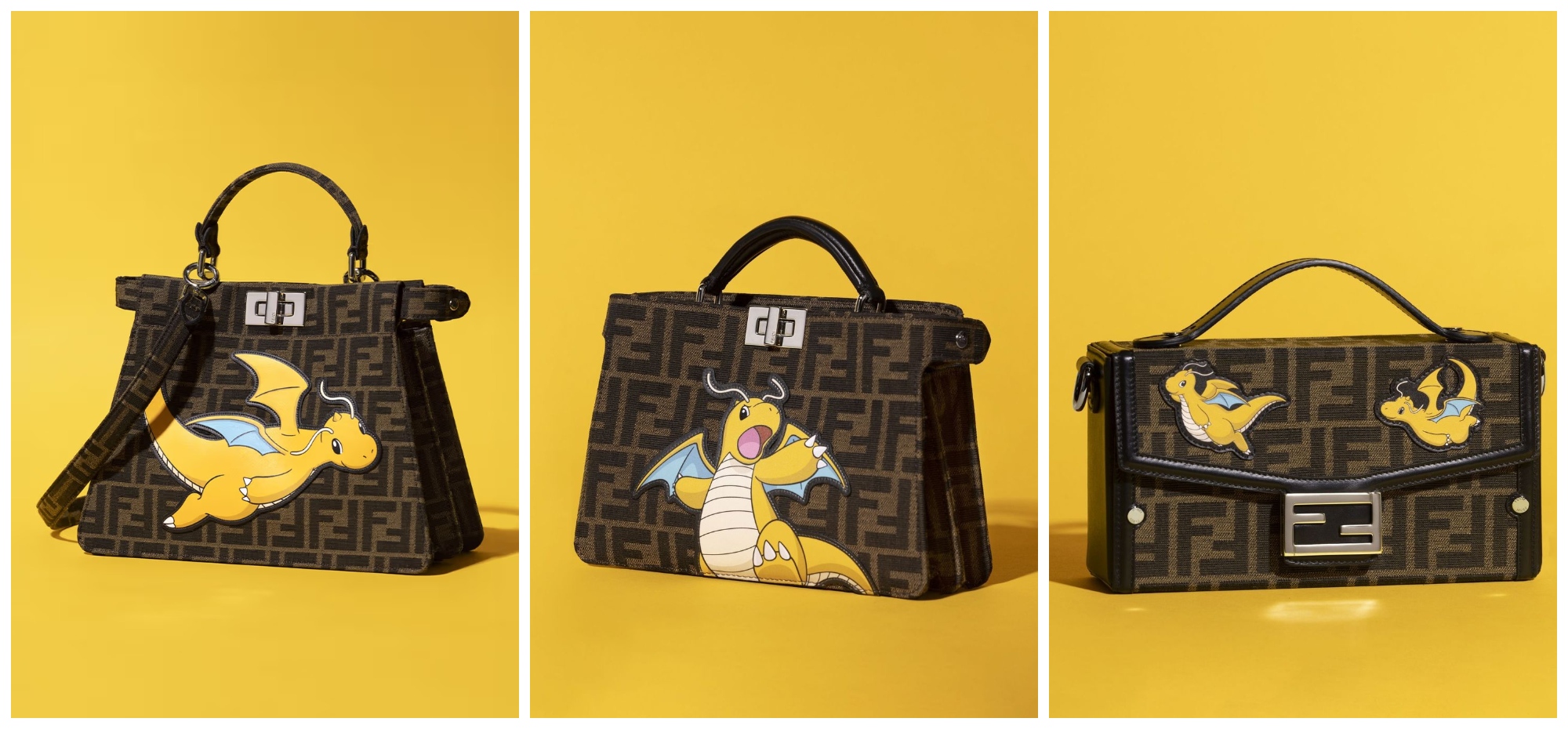 huyển tải thông điệp vui vẻ, nhộn nhịp của thời khắc trẩy hội xuân mới, Fendi x Frgmt x Pokémon Collection mang tới nhiều thiết kế túi xách, áo phông, áo hoodie cùng đồ ngủ lụa dành cho cả nam lẫn nữ hiển thị hình ảnh các Pokémon hệ rồng, bao gồm ‘Dragonair’, ‘Dratini’, ‘Dragonite’ đáng yêu cùng bản in logo FF. Trong khi đó, túi hiện diện trong phiên bản của Peekaboo và Baguette rất được yêu chuộng; túi mua sắm; túi đựng máy ảnh dành cho nam.