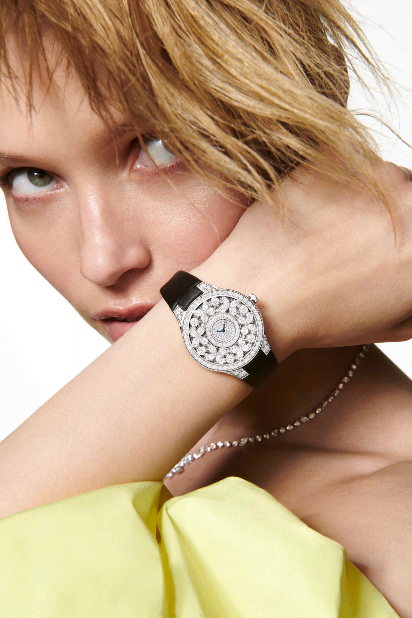 Mẫu đồng hồ này cũng mới có sẵn phiên bản bằng thép không gỉ. Nổi bật với mặt khảm xà cừ màu trắng hoặc đen, sáu con bướm yêu kiều bằng kim cương nhảy múa vũ điệu của tự nhiên xung quanh mặt số thu nhỏ, được hoàn thiện bằng núm vặn cũng nạm kim cương và đàn bướm rực rỡ được khắc trên mặt sau.