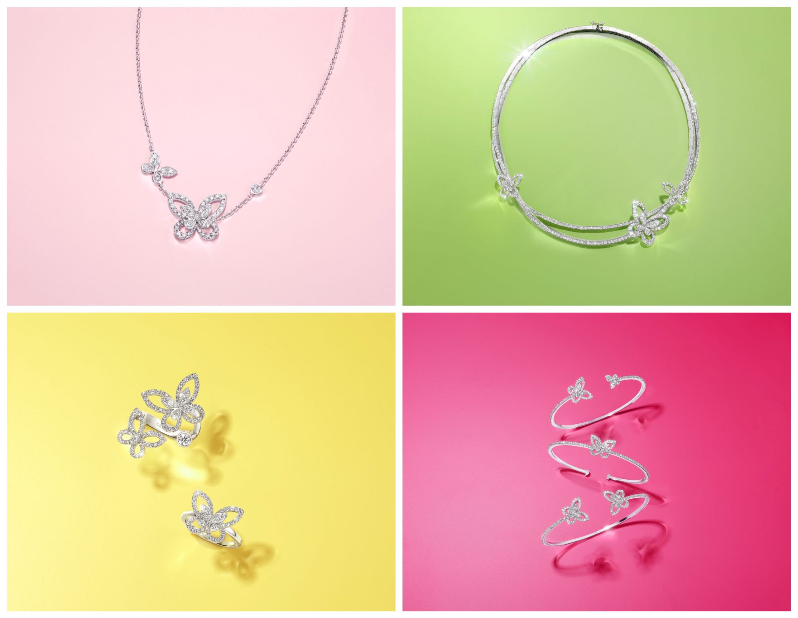 Bộ sưu tập bao gồm những chiếc nhẫn, dây chuyền và mặt dây chuyền cùng với hoa tai trẻ trung. Tăng thêm đẳng cấp và sự quý giá cho bộ sưu tập, kim cương màu vàng và hồng được nạm pavé đã được điểm xuyết khéo léo như thể những cánh bướm nhỏ xinh đang sà xuống nghỉ ngơi phút chốc trên những món đồ trang sức đắt giá ấy. Sự đối xứng hoàn hảo của đôi cánh bướm cũng được thể hiện một cách tuyệt vời trong bộ sưu tập Graff’s Classic Butterfly thông qua những hình dáng quyến rũ khắc họa một cách trang nhã trong hình dáng quả lê và những viên kim cương marquise.