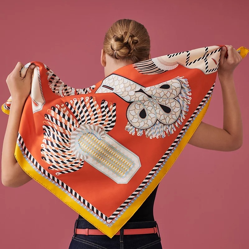 Khăn Hermès có giá dao động từ 225 đến hơn 3.000 USD. Trong khi khăn lớn có thể biến tấu nhiều phong cách, từ đội đầu, choàng cổ đến diện trên cơ thể như một chiếc áo tinh tế, thì khăn kích thước nhỏ hơn đóng vai trò phụ kiện điểm xuyết chiếc túi sang trọng. Hãng thời trang Pháp còn vang danh toàn cầu thông qua những chiếc khăn dệt hoàn toàn thủ công sử dụng hơn 250 kén tơ tằm, có mức giá cao đáng kể. Điều làm cho những chiếc khăn Hermès sản xuất hoàn toàn tại Pháp trở nên khác biệt là mỗi chiếc khăn được sáng tạo tỉ mỉ trong quy trình kéo dài tựa như một tác phẩm nghệ thuật. Hãng thời trang tung ra các thiết kế mới theo mùa với đa dạng họa tiết phổ biến, bao gồm thiết bị cưỡi ngựa, báo, ngựa và sư tử. Hơn thế, Hermès thể hiện sự quan tâm đến những điều nhỏ nhất dành cho người mộ điệu trung thành khi phát hành ứng dụng ‘Hermès Silk Knots’ với hướng dẫn chi tiết từng bước về cách hoàn thiện các kiểu thắt nút phổ biến nhất.