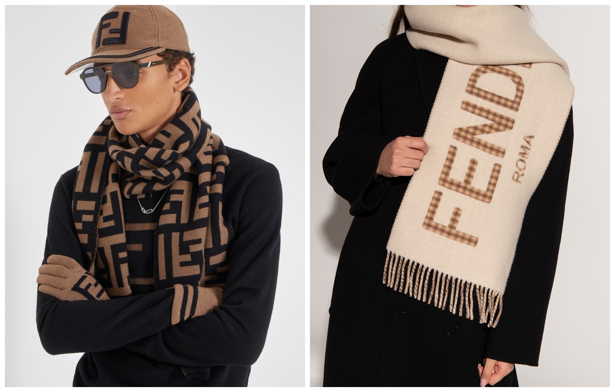 Nếu như đang cân nhắc về việc bỏ hàng nghìn USD cho một chiếc túi hiệu trong lần mua hàng đầu tiên, khăn choàng là gợi ý hoàn hảo cho bạn, trước khi bắt đầu công cuộc tìm hiểu chiếc túi Fendi ‘Baguette’. Sản xuất tại Ý, từng chiếc khăn choàng Fendi chinh phục phái đẹp bằng kiểu dáng phổ biến nhất kết hợp họa tiết FF đặc trưng. Không giống như Hermès, khăn Fendi chủ yếu thành hình từ hỗn hợp 95% len và 5% lụa, bên cạnh các tùy chọn lụa hữu cơ, hoặc lông chồn. Vị chủ nhân tương lai có thể phải bỏ ra số tiền từ 490 đến 2.500 USD cho một chiếc khăn Fendi. Thương hiệu thời trang cao cấp còn làm sống lại xu hướng ‘logomania’ thông qua dòng sản phẩm phụ kiện Fendi đầy đủ bao gồm áo poncho, mũ và khăn choàng cổ tương thích.