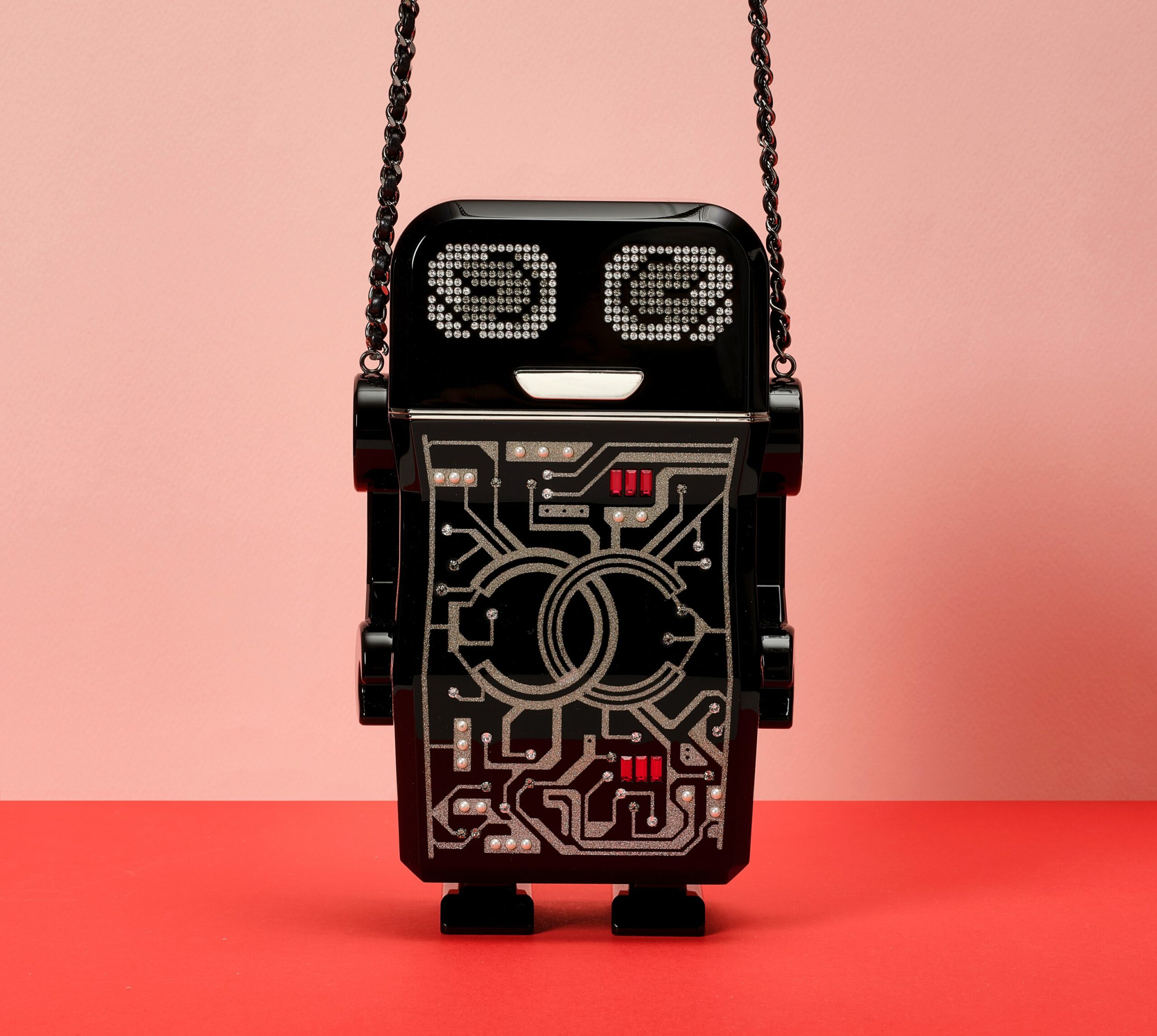 Túi Chanel robot minaudiere đen quý hiếm nổi bật với phần cứng ruthenium, từng xuất hiện trong show diễn xuân – hè năm 2017 của Chanel