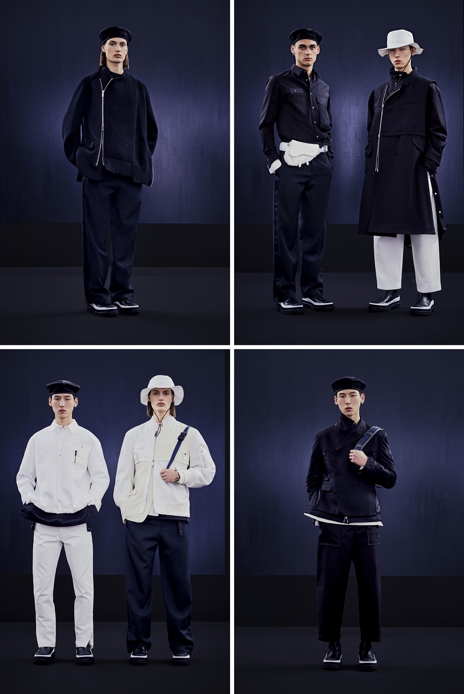 Với Kim Jones, phong cách thể thao năng động, trẻ trung cùng giá trị may đo để mang đến dự chỉn chu luôn là dấu ấn đặc trưng của ông qua mỗi thiết kế. Trong khi đó, góc nhìn táo bạo và đam mê nghiên cứu chất liệu của Chitose Abe lại mang đến một không khí rất trẻ trung, phóng khoáng và nam tính cho bộ sưu tập. Đánh dấu màn hợp tác giữa hai đế chế thời trang, dòng chữ Dior trên trang phục được cách điệu lại bằng việc thay chữ “i” trong Dior bằng hàng chữ nhỏ Sacai.