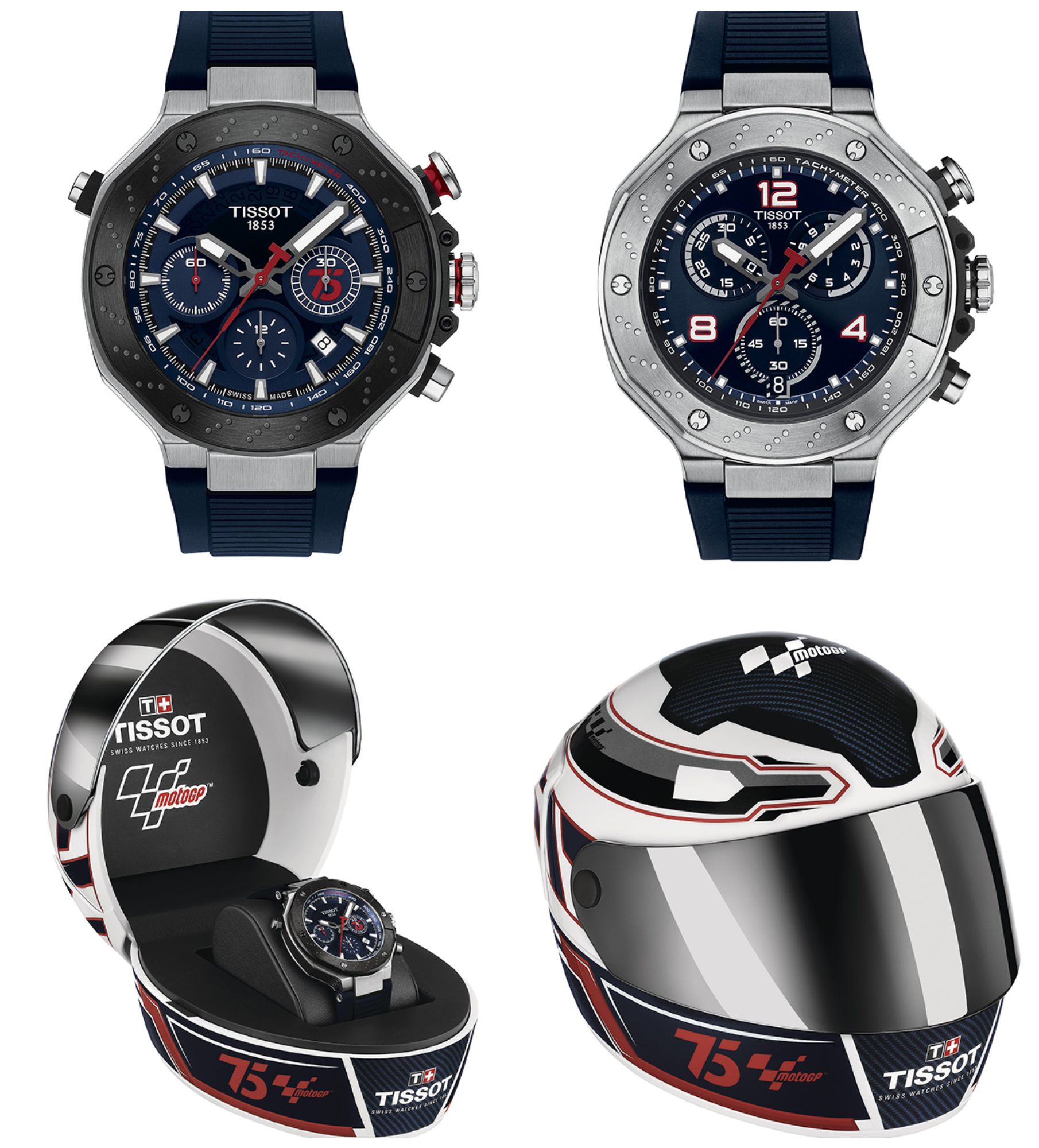 Tissot – đối tác lâu năm của MotoGPTM trong suốt 25 năm qua vừa bổ sung vào bộ sưu tập T-Race 4 mẫu đồng hồ mới: 2 phiên bản đặc biệt nhằm kỉ niệm 75 năm thành lập giải đua MotoGPTM và 2 phiên bản T- Race Chronograph Quartz. Các tạo phẩm là sự kết hợp của những chi tiết và chuyên môn của ngành chế tạo đồng hồ, cơ khí xe máy và phong cách sống tự do, phóng khoáng của những ai đam mê bộ môn thể thao đua xe.