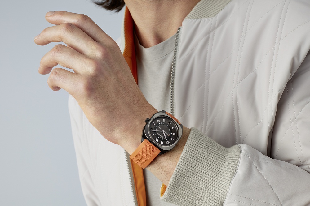 Cái tên bí ẩn của Hermès H08 gợi lên ý niệm về đồ họa, toán học và siêu hình học. Phông chữ nguyên bản đặc biệt của các chữ số hòa hợp với ngoại diện tổng thể, tiêu biểu là số 0 và số 8. Chữ số 0 tượng trưng cho sự trống rỗng, trong khi con số 8 nằm ngang là ký hiệu vô cực. Những dụng ý thiết kế này như ngụ ý dẫn lối vị chủ nhân bước vào cuộc hành trình giữa vạn vật và hư không, với những bí ẩn vang vọng cùng chiều sâu thăm thẳm của thời gian. Hòa chung nhịp đập của tạo tác là bộ chuyển động Hermès H1837 tự lên dây cót cơ học ẩn bên trong lớp vỏ cushion mạ niken đen 39mm. Hoàn thiện vẻ ngoại cá tính là dây đeo cao su màu cam.