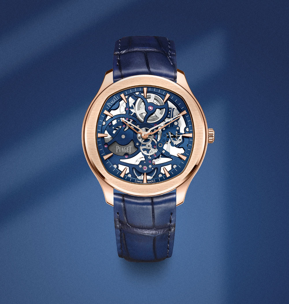 Mẫu đồng hồ gắn liền với môn thể thao quý tộc Polo năm nay trở lại đường đua Watches & Wonders 2021 với bộ vỏ vàng hồng 18K kích thước 42mm tiêu chuẩn cho cánh mày râu. Mặt số skeleton đậm chất cổ điển nhưng vẫn toát ra được vẻ đẹp mê hồn của bộ máy tự lên dây 1200S1 mạnh mẽ dự trữ năng lượng 55 giờ. Độ mỏng nhẹ tiếp tục là thế mạnh của Piaget khi tân phẩm này chỉ dày có 6.5mm – mang đến trải nghiệm nhẹ nhàng tuyệt vời cho vị nam chủ nhân. Dây đeo bằng da cá sấu màu xanh vừa lịch lãm lại vừa tiện lợi khi có thể tháo ra dễ dàng để hoán đổi với những mẫu dây đeo khác tùy theo sở thích của chủ nhân.